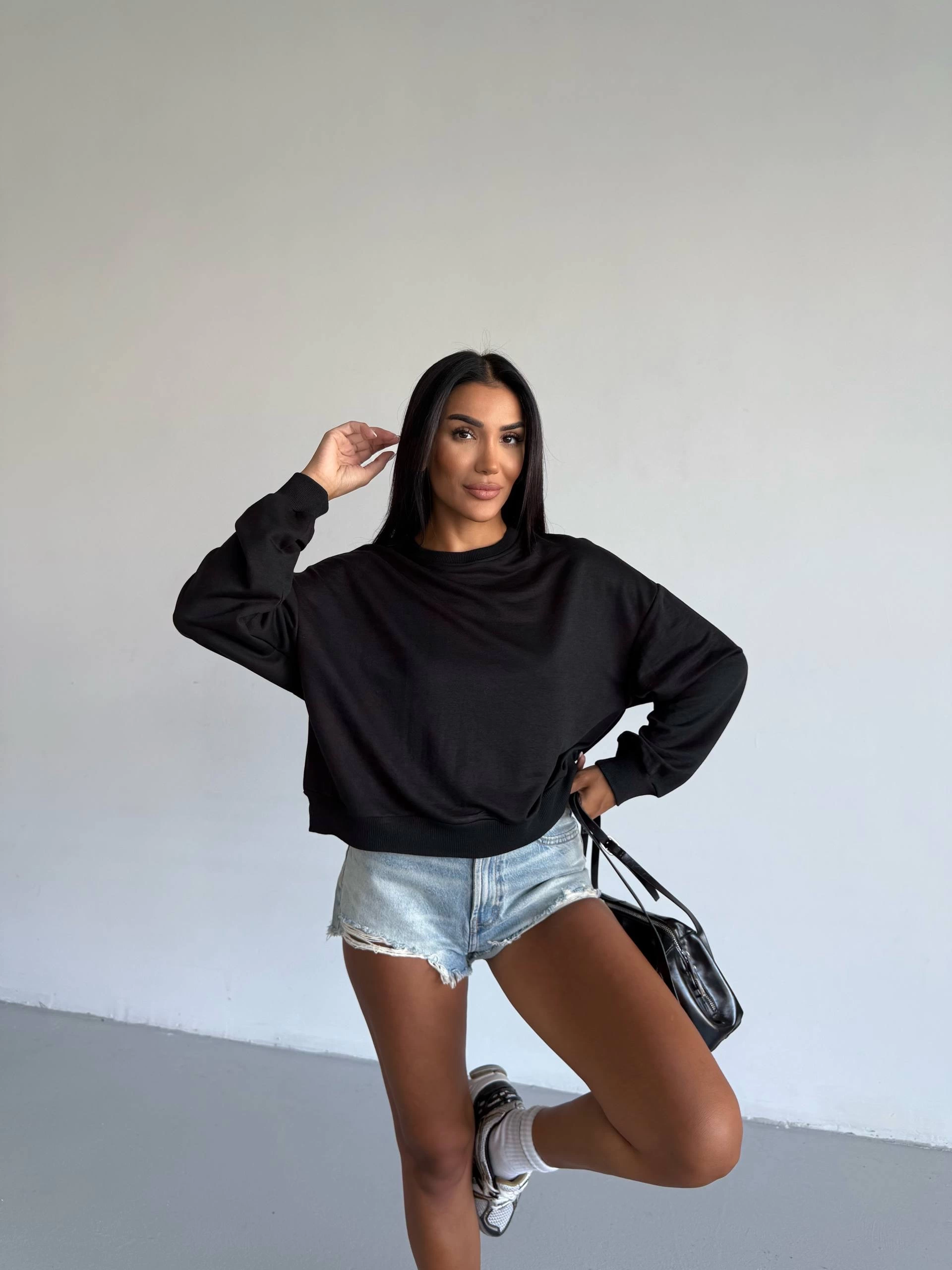 Kadın Uzun Kollu Tek Omuz Askı Detay Salaş Viskon Iki Iplik Bluz