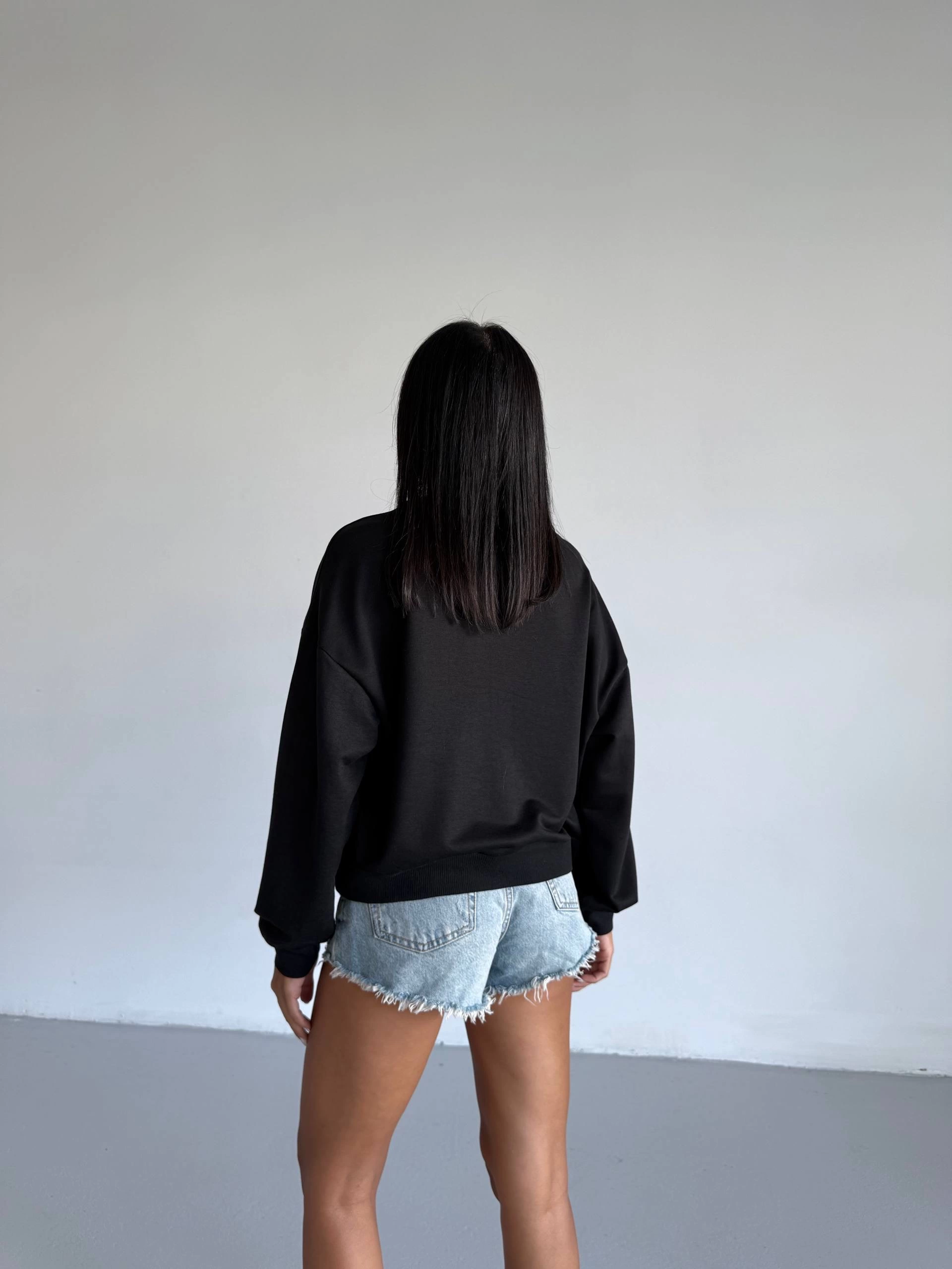 Kadın Uzun Kollu Yakadan Fermuarlı Kot Görünüm Desenli Uzun Modal Bluz