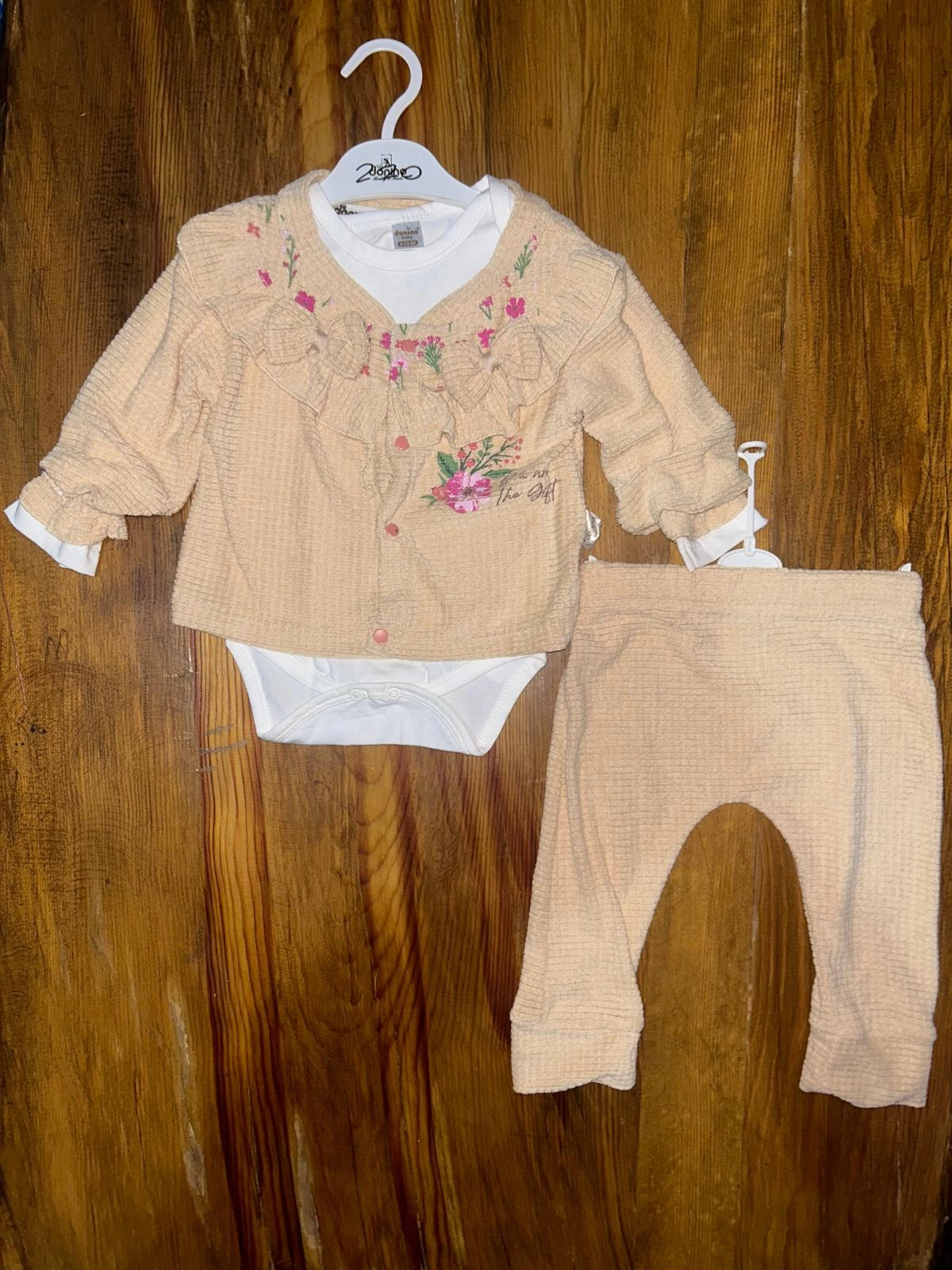 KAZAX 3-12 aylık bej üçlü takım, bebeğiniz için şık ve konforlu bir seçenektir.