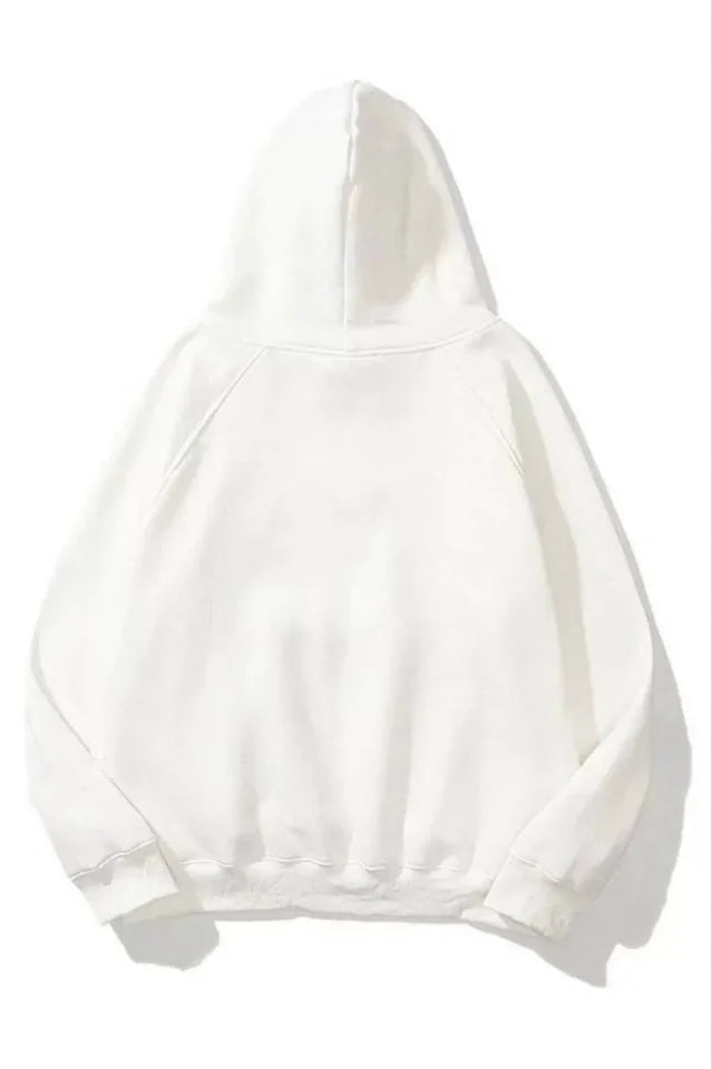 3 İplik Pamuklu Unisex Kapşonlu Sweetshirt - Beyaz
