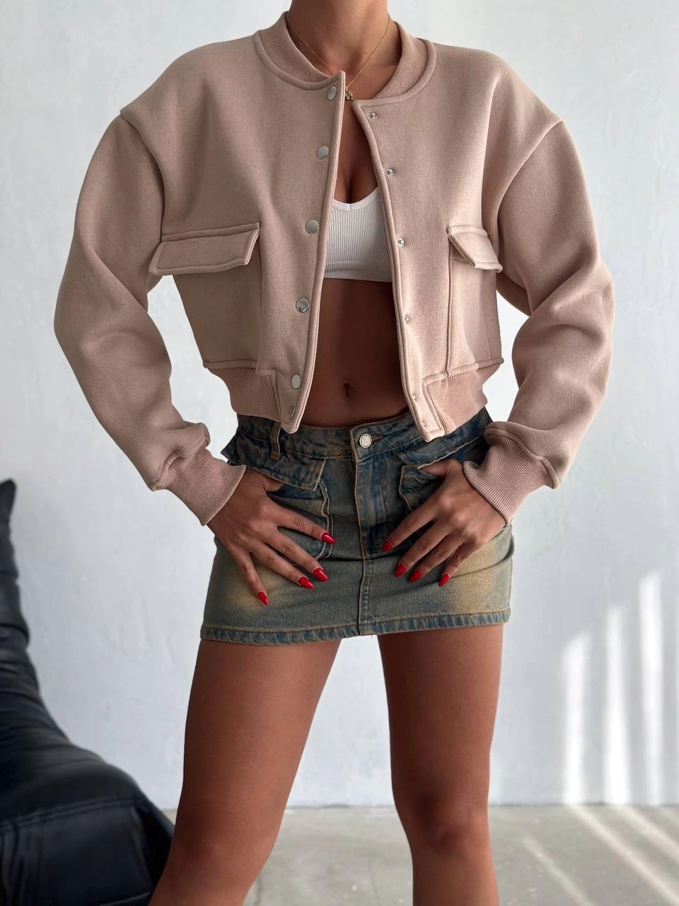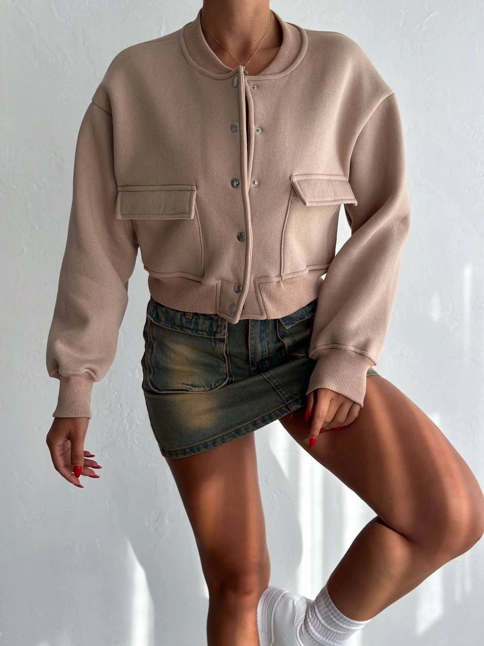 3 iplik şardonlu Önü çıtçıtlı cepli ceket bej f2226
