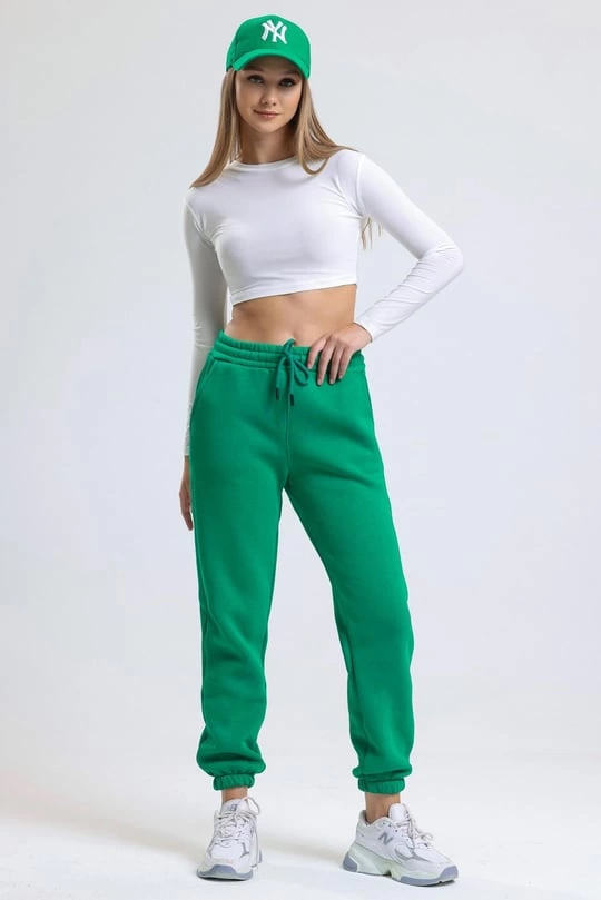 3 iplik şardonlu paça lastikli eşofman yeşil is001