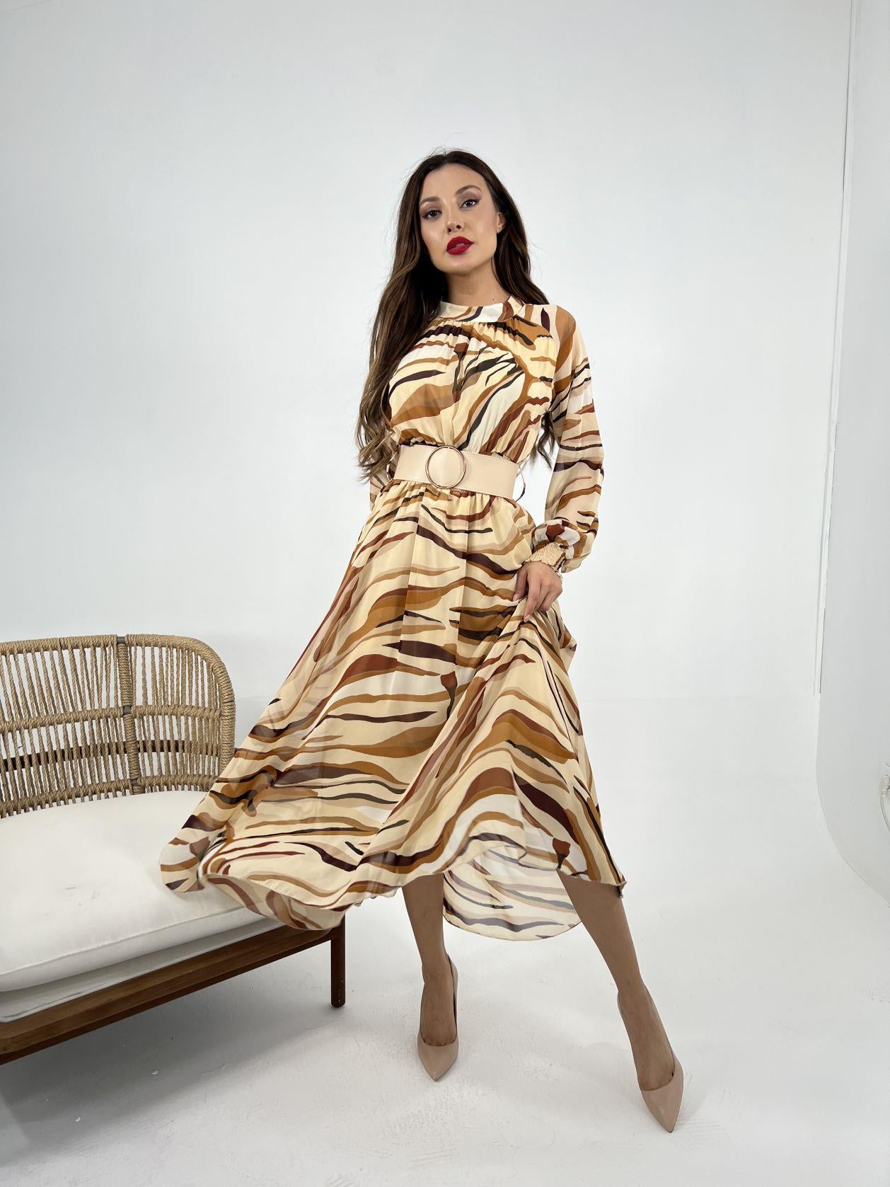 Leopar Sırt Detaylı Leopar Desenli Saten Elbise