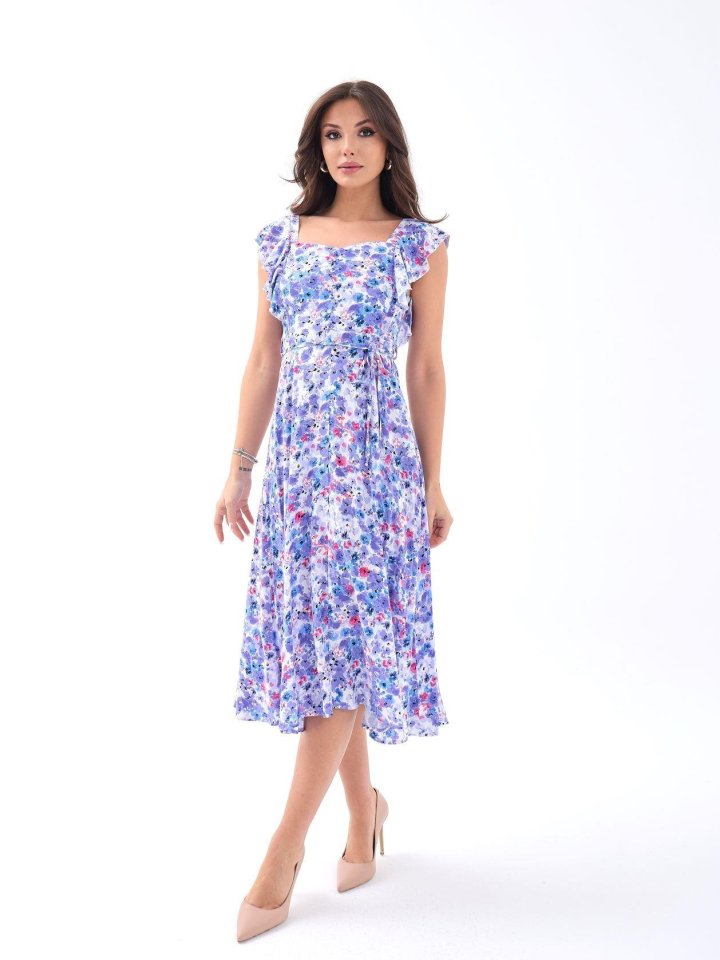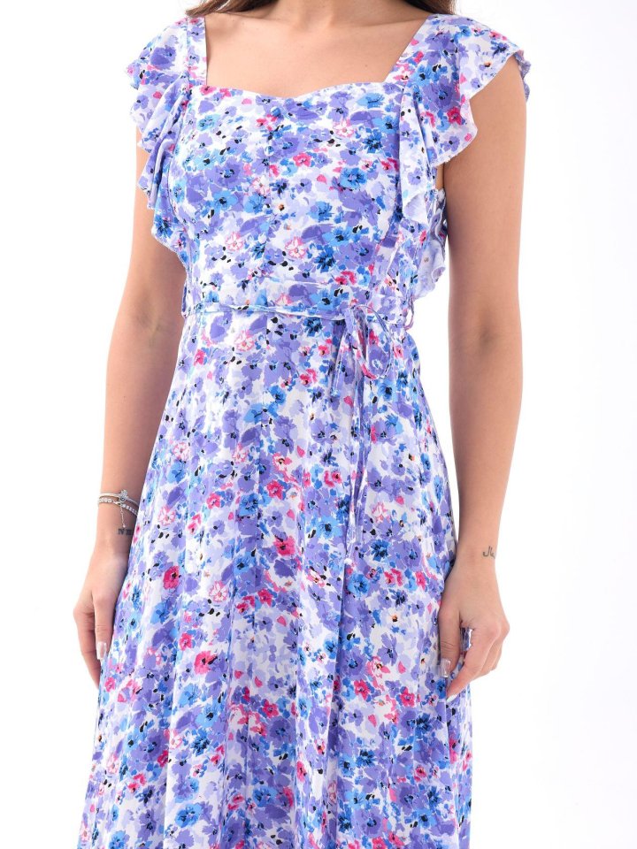 Kadın Kısa Kollu Yakadan Ve Etekten Fermuarlı Midi Viskon Iki Iplik Elbise