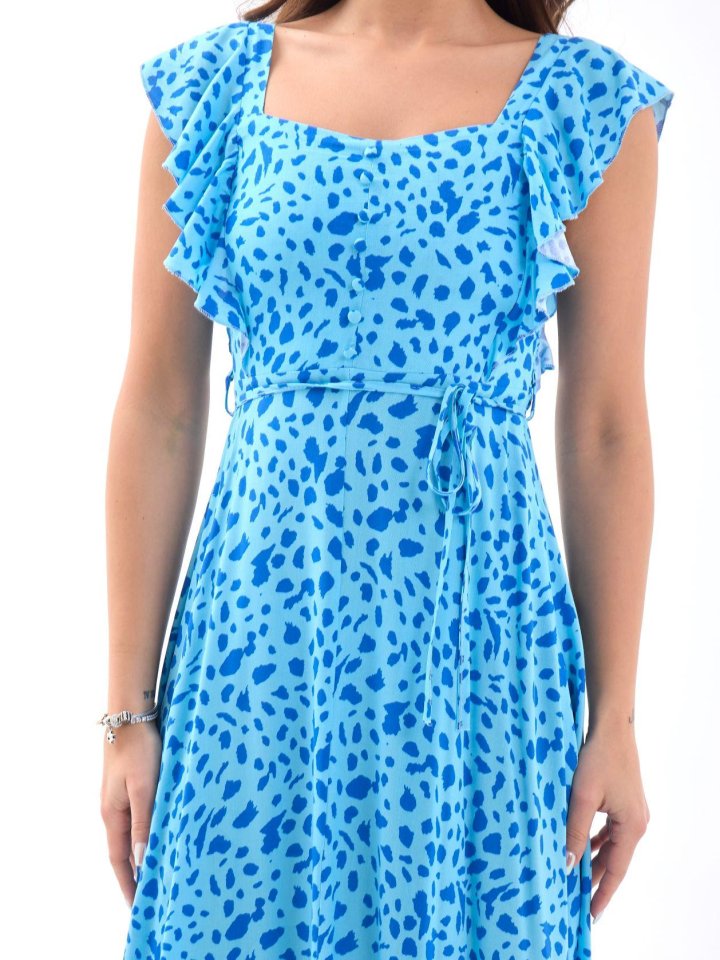 Leopar Sırt Detaylı Leopar Desenli Saten Elbise