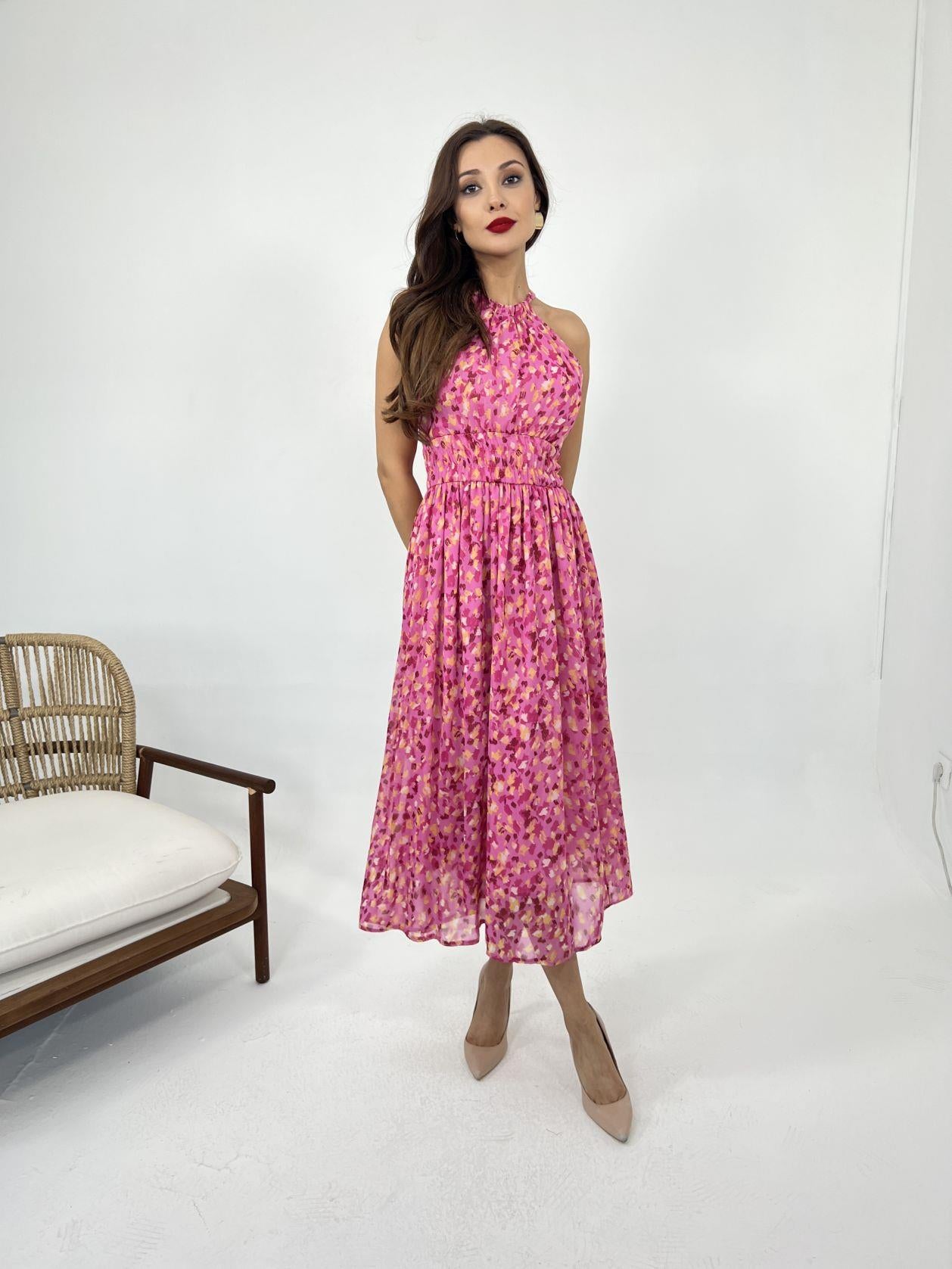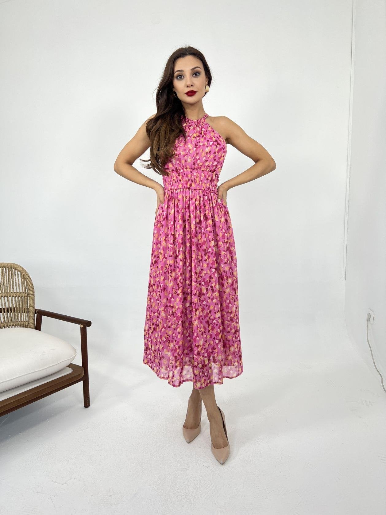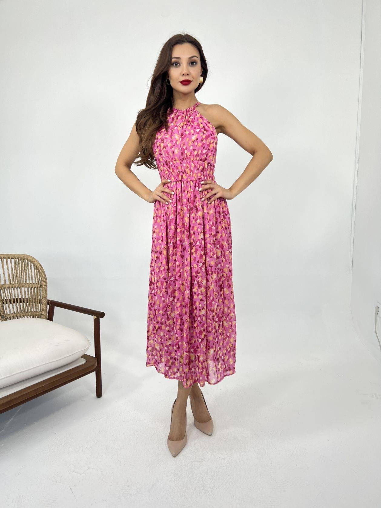 Leopar Sırt Detaylı Leopar Desenli Saten Elbise