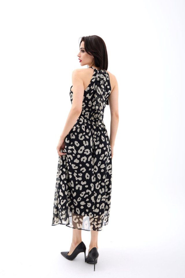 Leopar Sırt Detaylı Leopar Desenli Saten Elbise