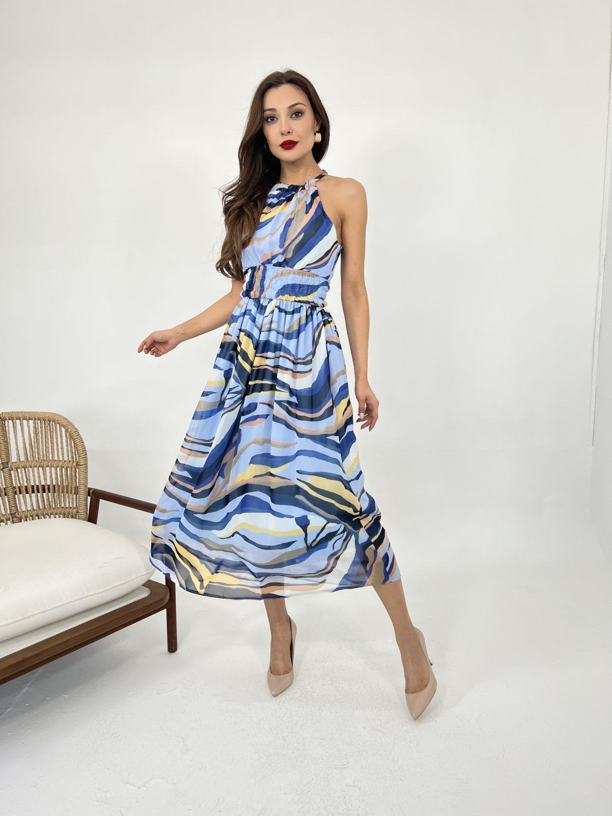 Leopar Sırt Detaylı Leopar Desenli Saten Elbise