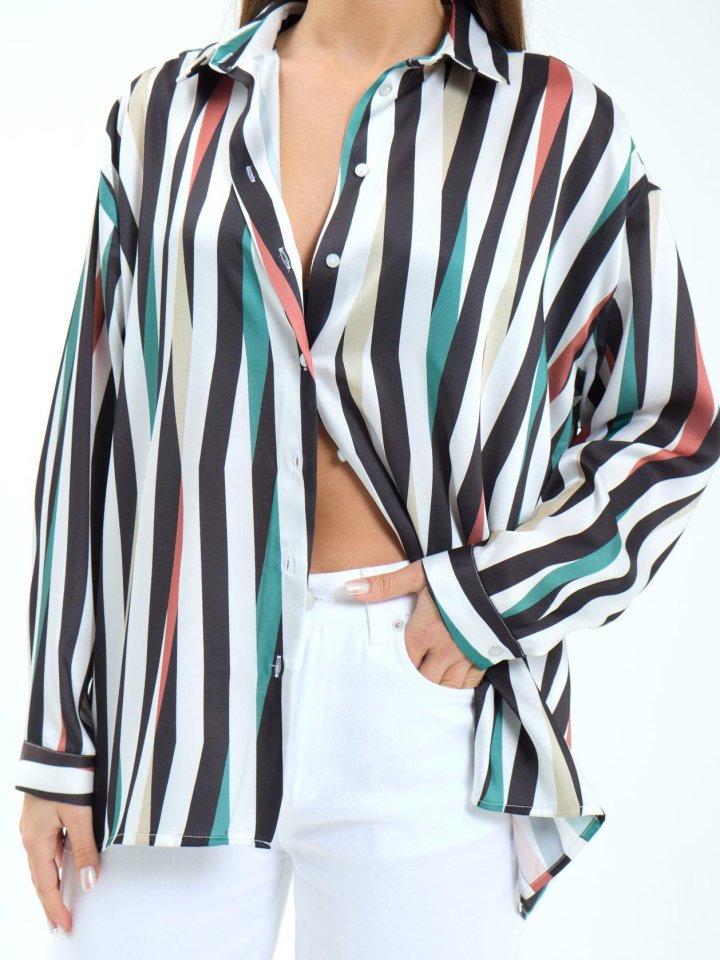 Kadın Uzun Kollu Bisiklet Yaka Desenli Viskon Iki Iplik Bluz