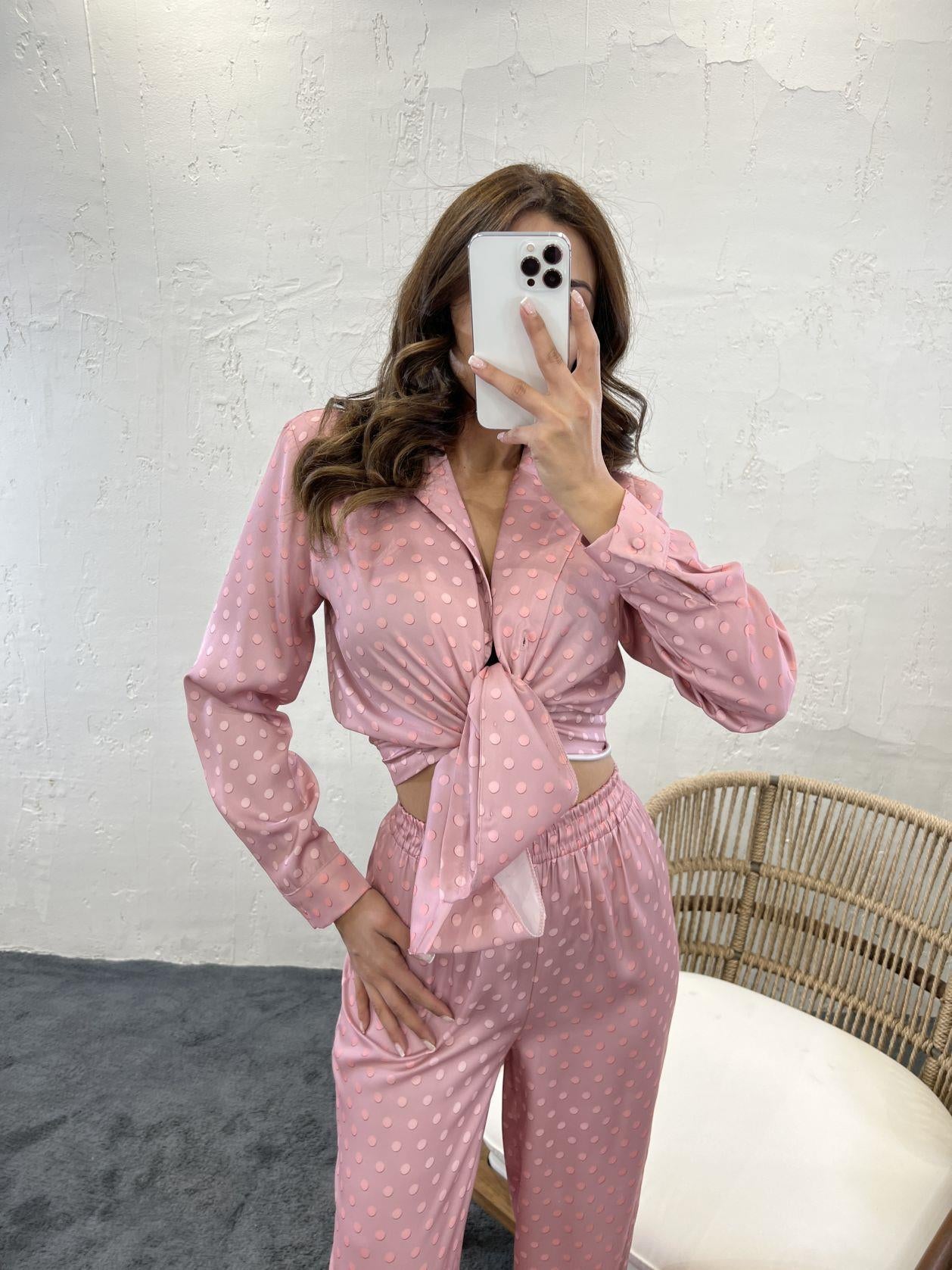 Kadın Uzun Kollu Bisiklet Yaka Desenli Viskon Iki Iplik Bluz