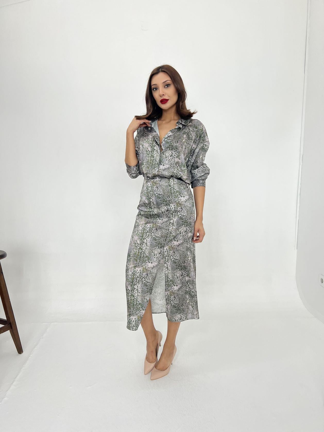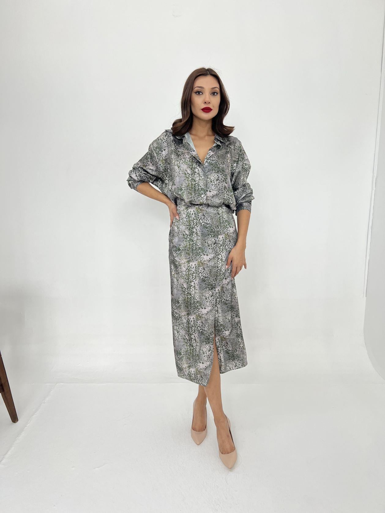 Leopar Sırt Detaylı Leopar Desenli Saten Elbise