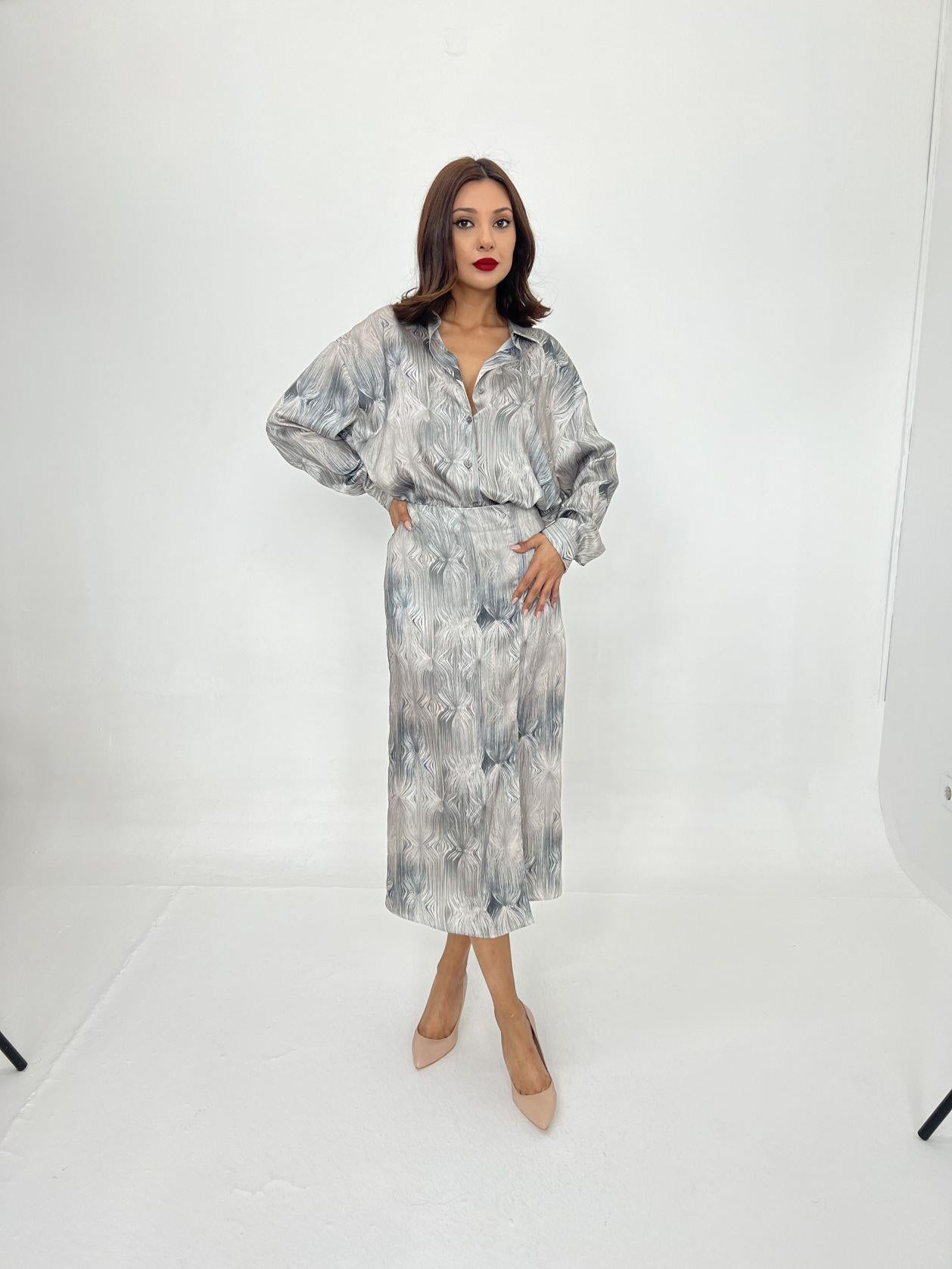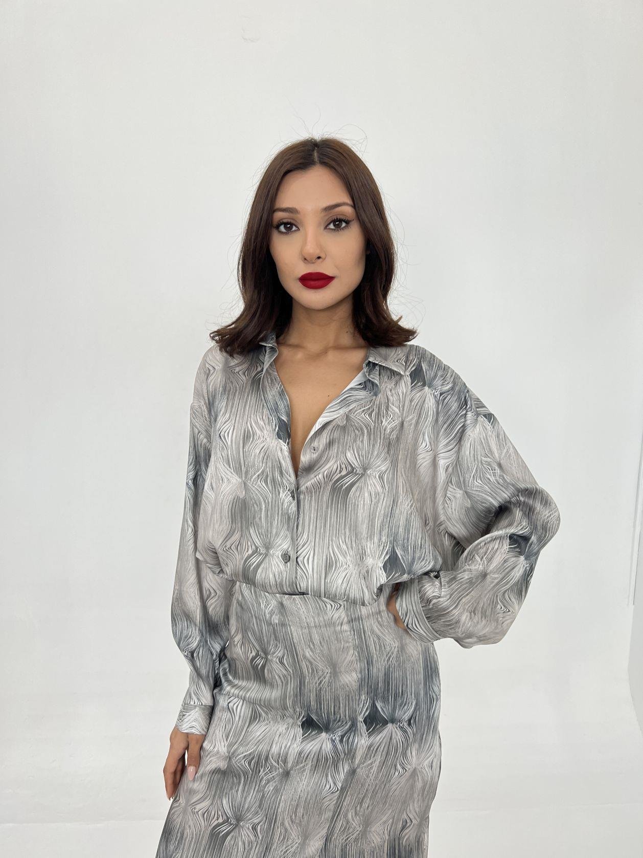 Kadın Uzun Kollu Bisiklet Yaka Desenli Viskon Iki Iplik Bluz