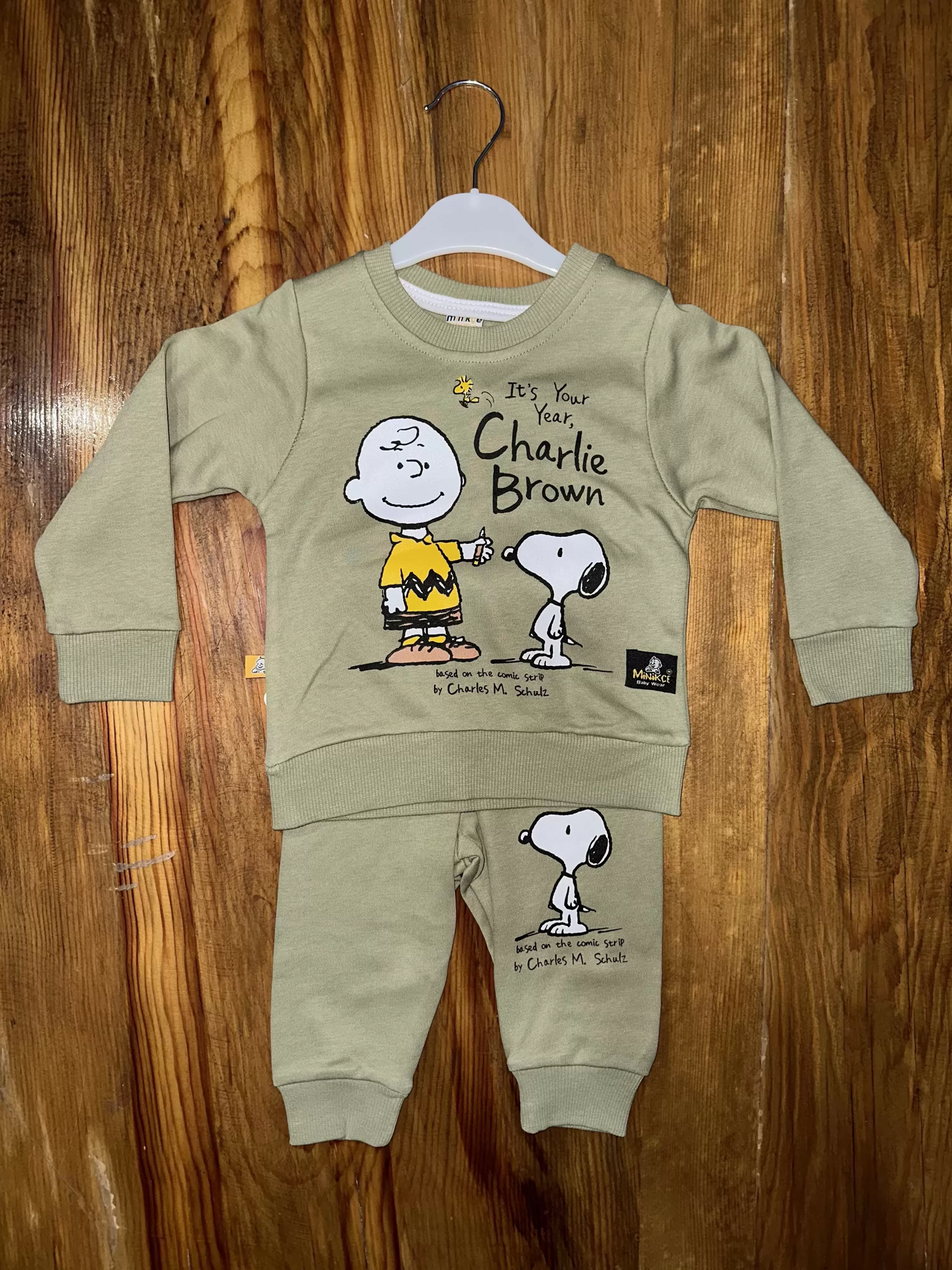 6-24 aylık Charlie baskılı takım yeşil, bebeğiniz için şık ve rahat bir kıyafet seçeneğidir.