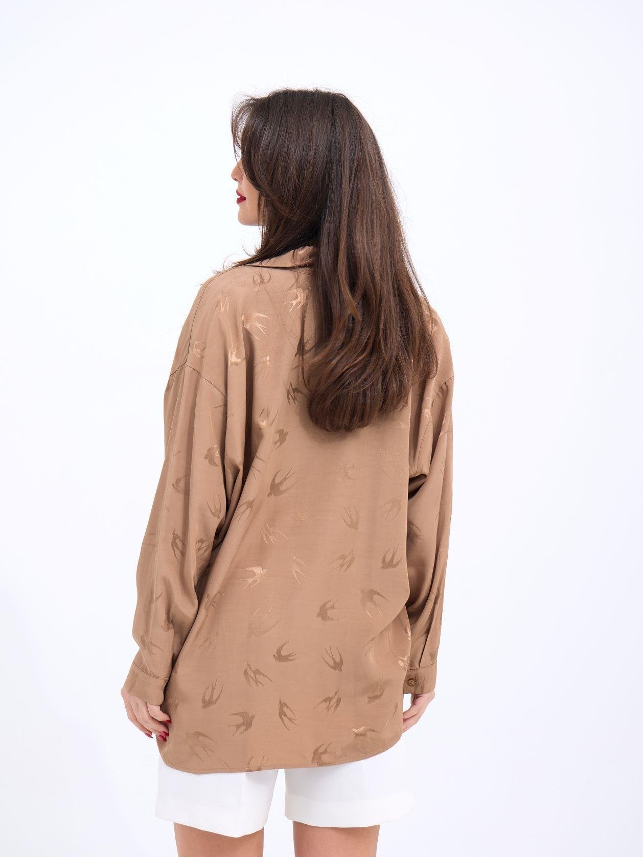 Kadın Uzun Kollu Bisiklet Yaka Desenli Viskon Iki Iplik Bluz