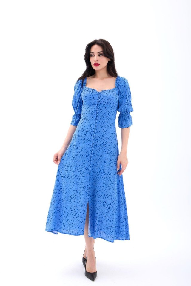 Kadın Kısa Kollu Yakadan Ve Etekten Fermuarlı Midi Viskon Iki Iplik Elbise