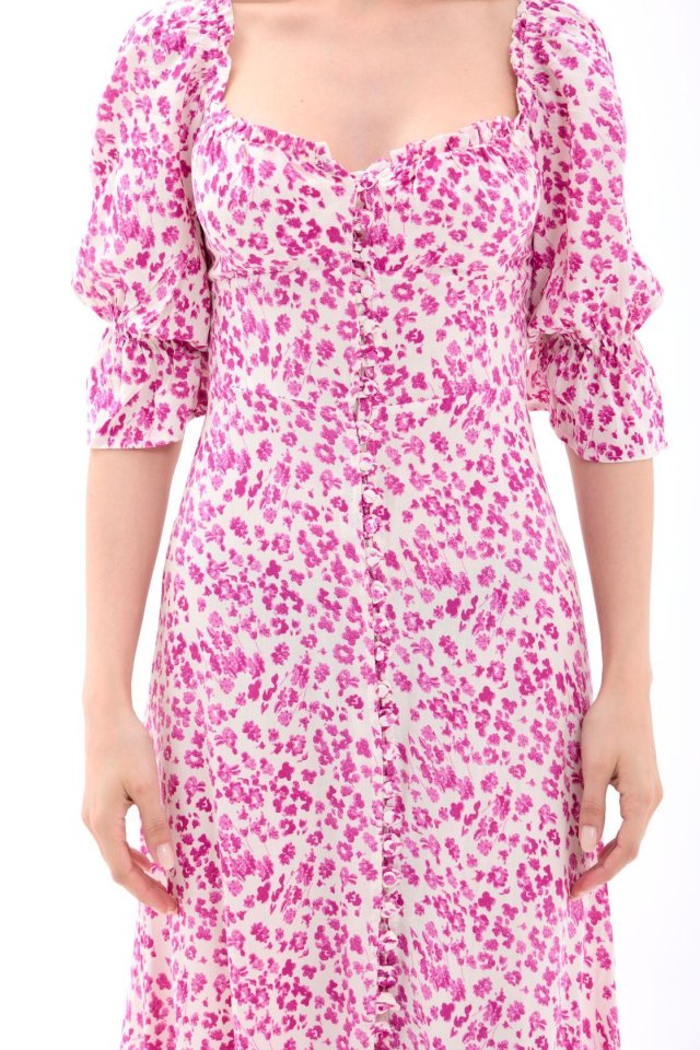 Kadın Kısa Kollu Yakadan Ve Etekten Fermuarlı Midi Viskon Iki Iplik Elbise