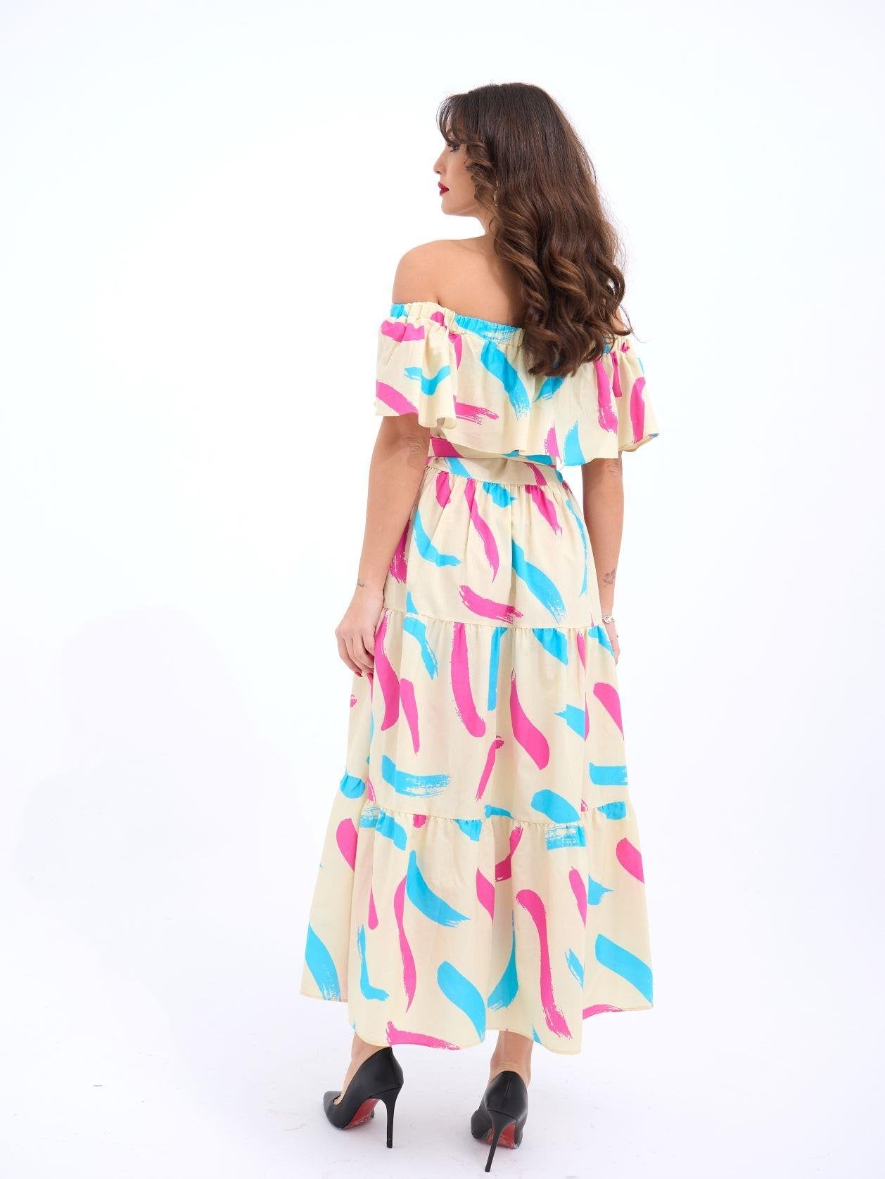 Kadın Kısa Kollu Yakası Açık Katlı Bürümcük Balon Elbise