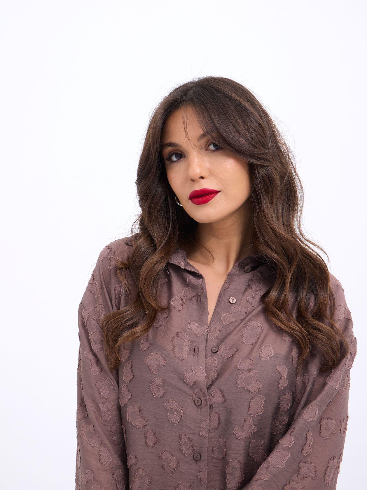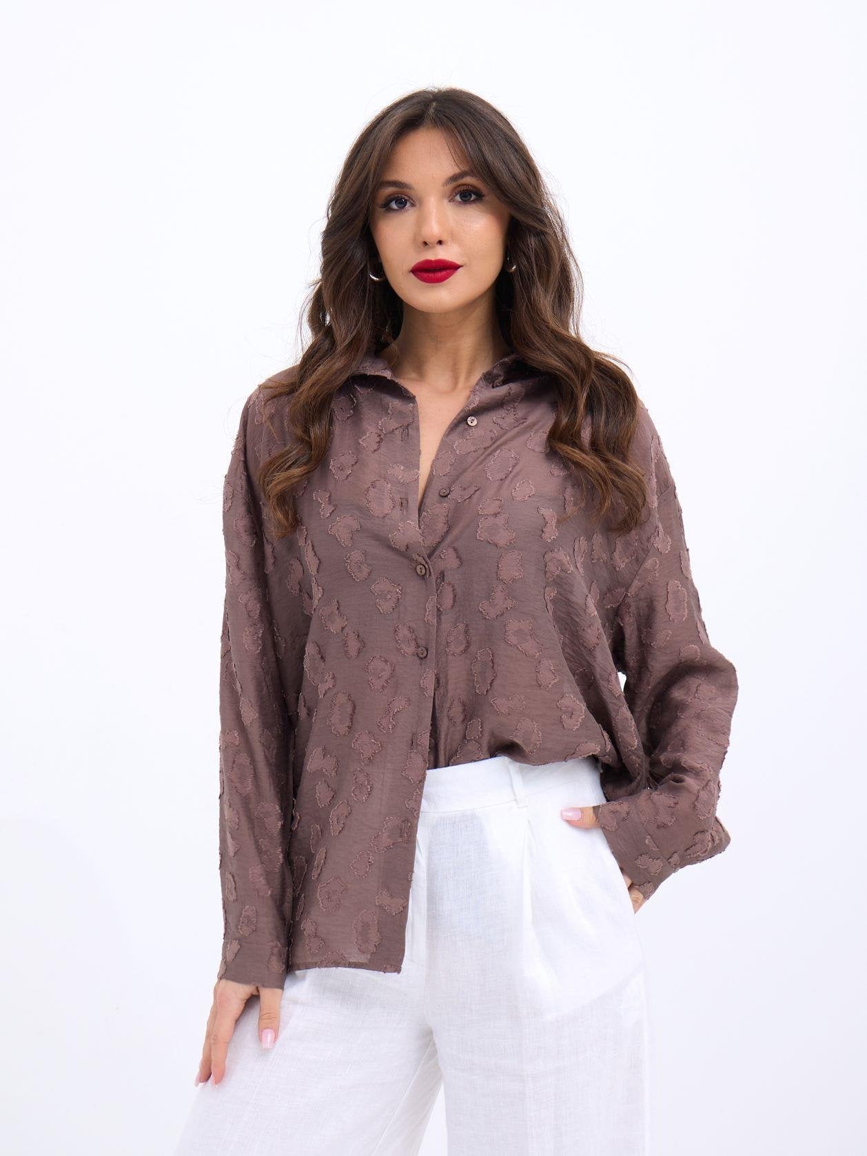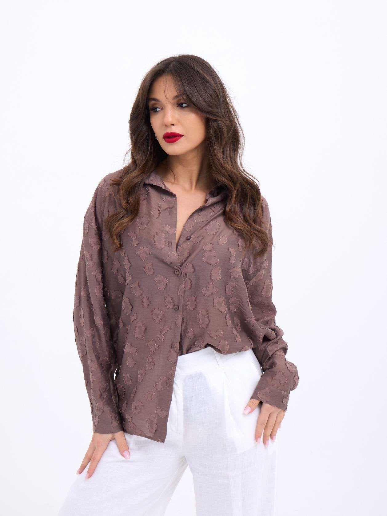 Kadın Uzun Kollu Bisiklet Yaka Desenli Viskon Iki Iplik Bluz