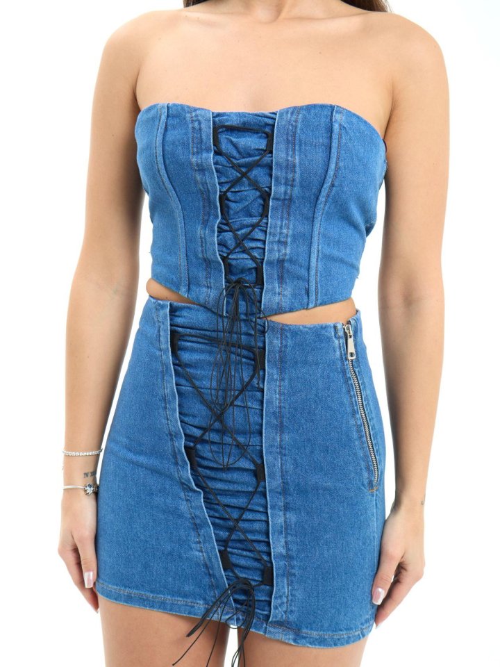 Kadın Kolsuz Boyundan çapraz Geçirmeli Göğüs Damla Detay Kaşkorse Bluz