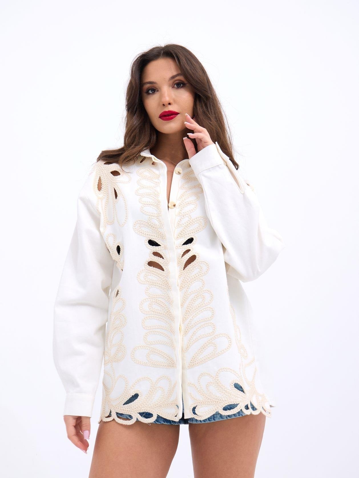 Ottoman kumaş beyaz gömlek yaka takım s4142