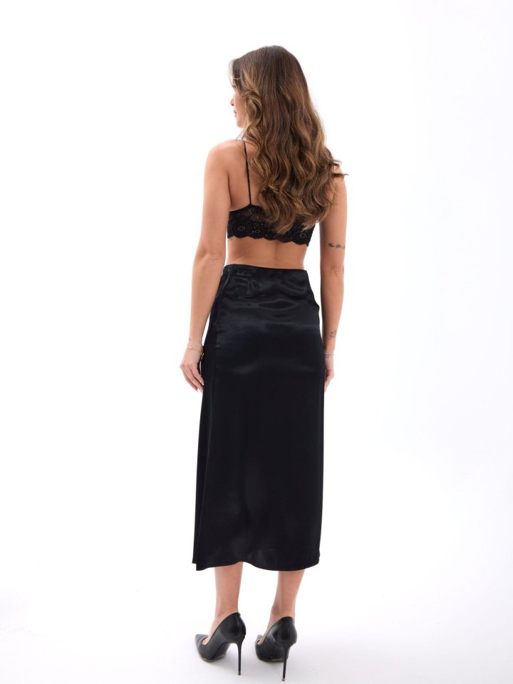 Kadın Askılı Degaje Yakalı Yırtmaçlı Kadife Midi Elbise
