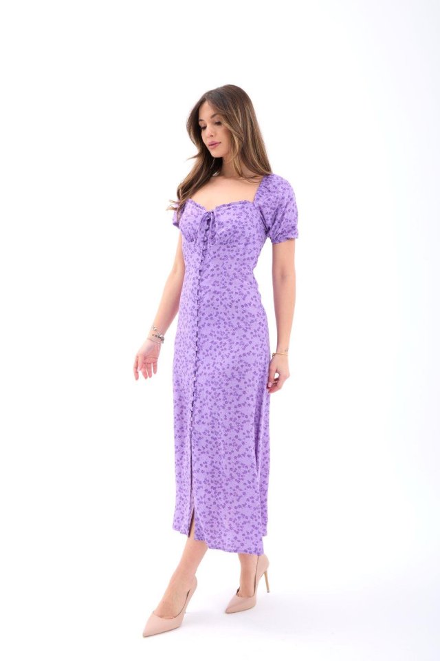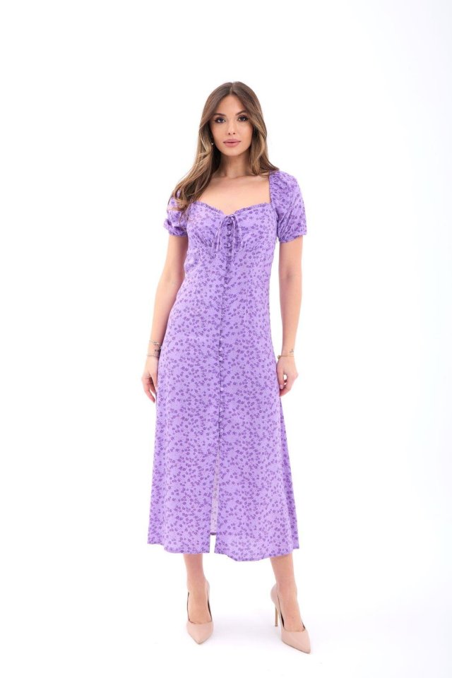 Kadın Kısa Kollu Yakadan Ve Etekten Fermuarlı Midi Viskon Iki Iplik Elbise