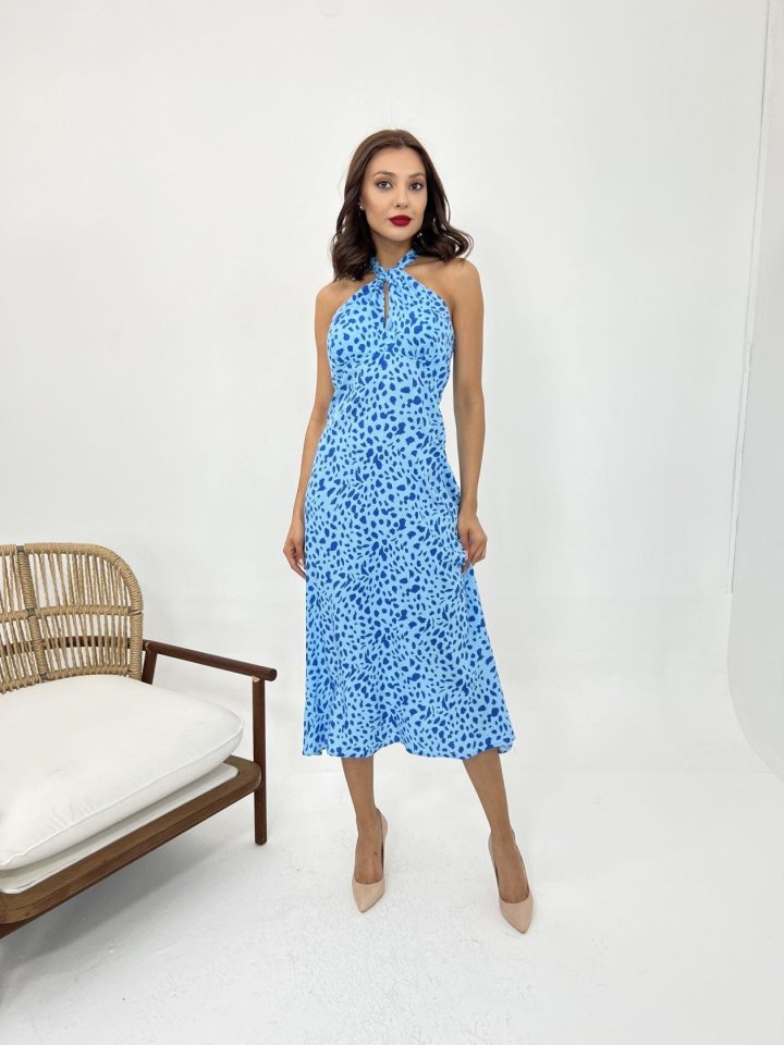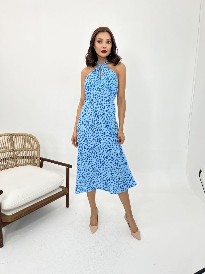 Leopar Sırt Detaylı Leopar Desenli Saten Elbise