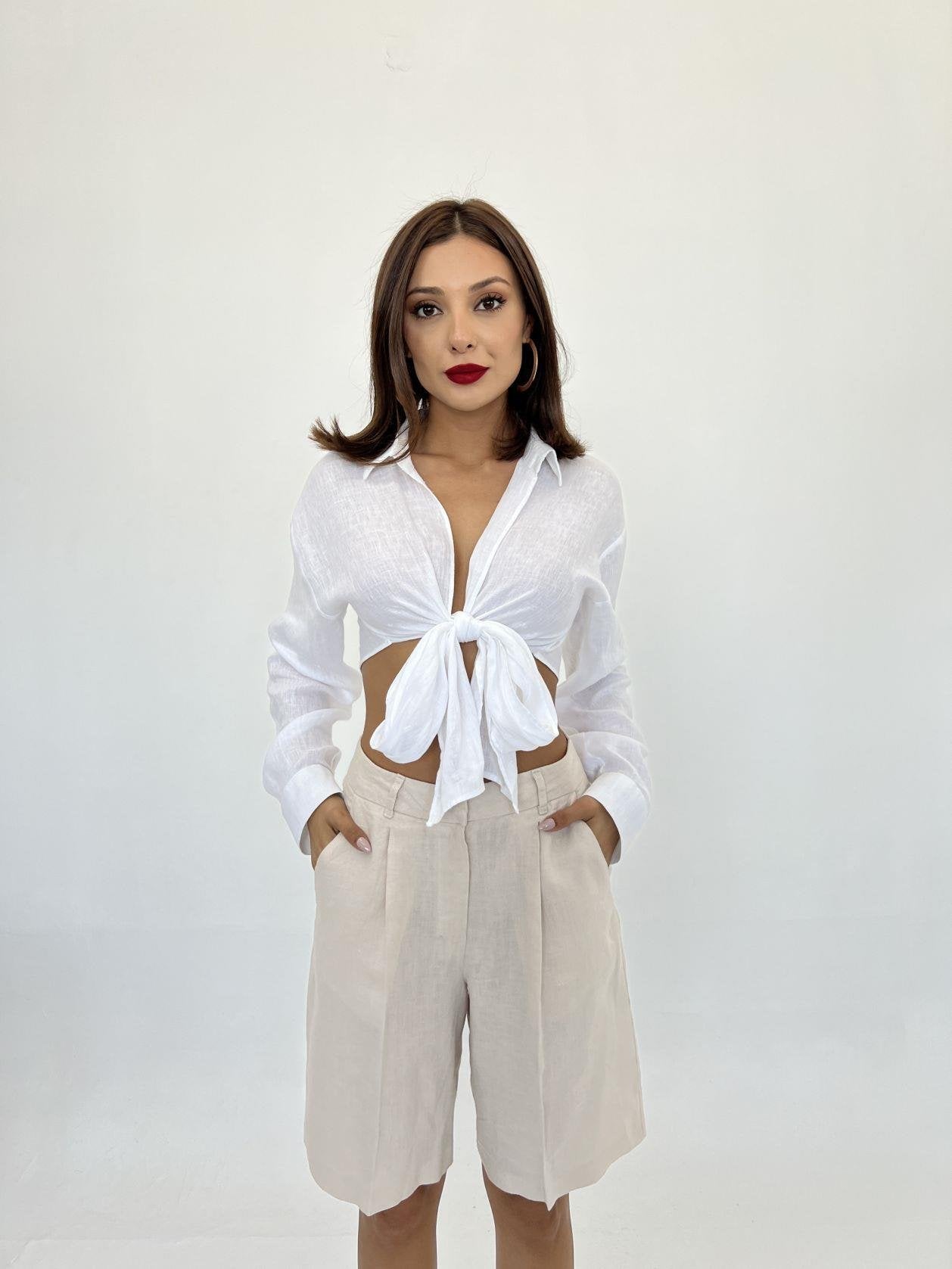 Kadın Uzun Kollu Kruvaze Yakalı Incili şardonlu Kaşkorse Bluz