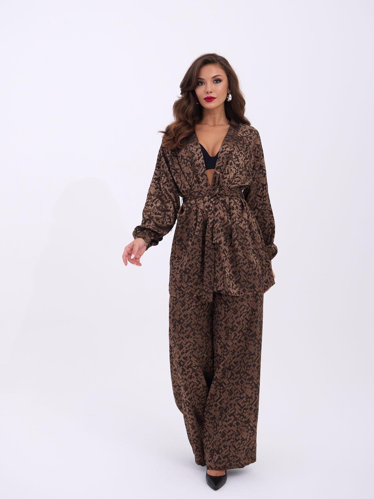 Leopar Sırt Detaylı Leopar Desenli Saten Elbise