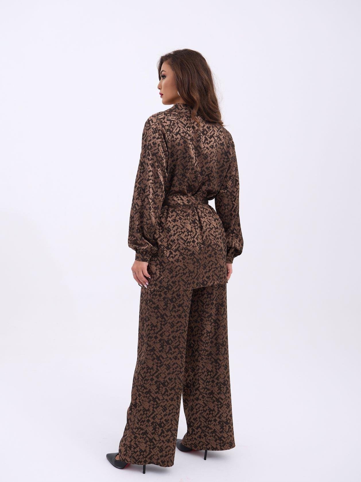 Kadın Uzun Kollu Bisiklet Yaka Desenli Viskon Iki Iplik Bluz