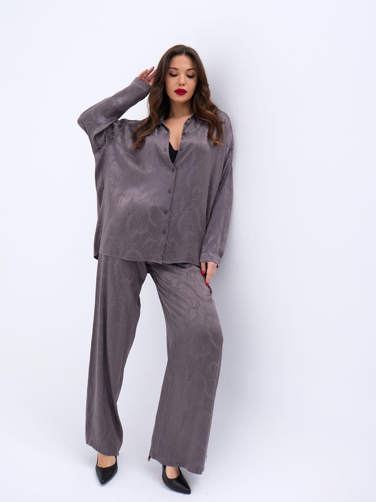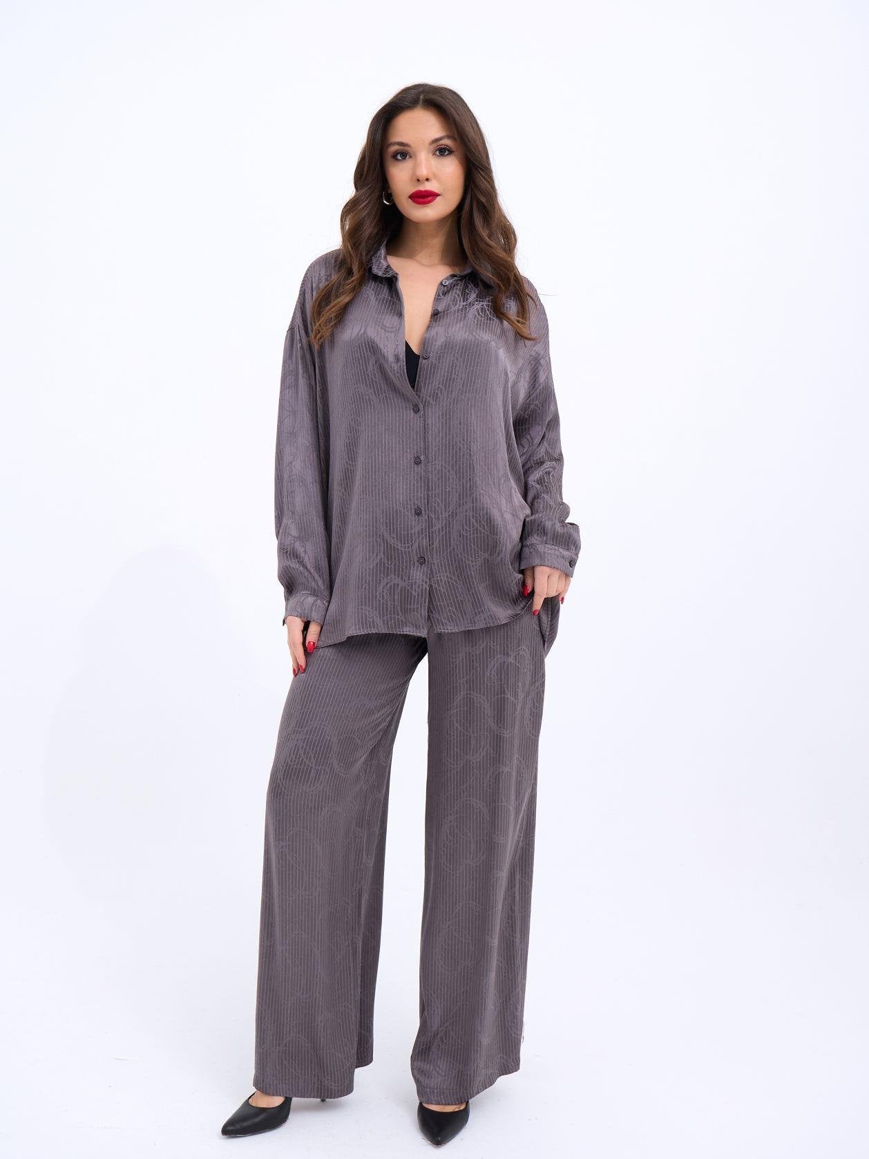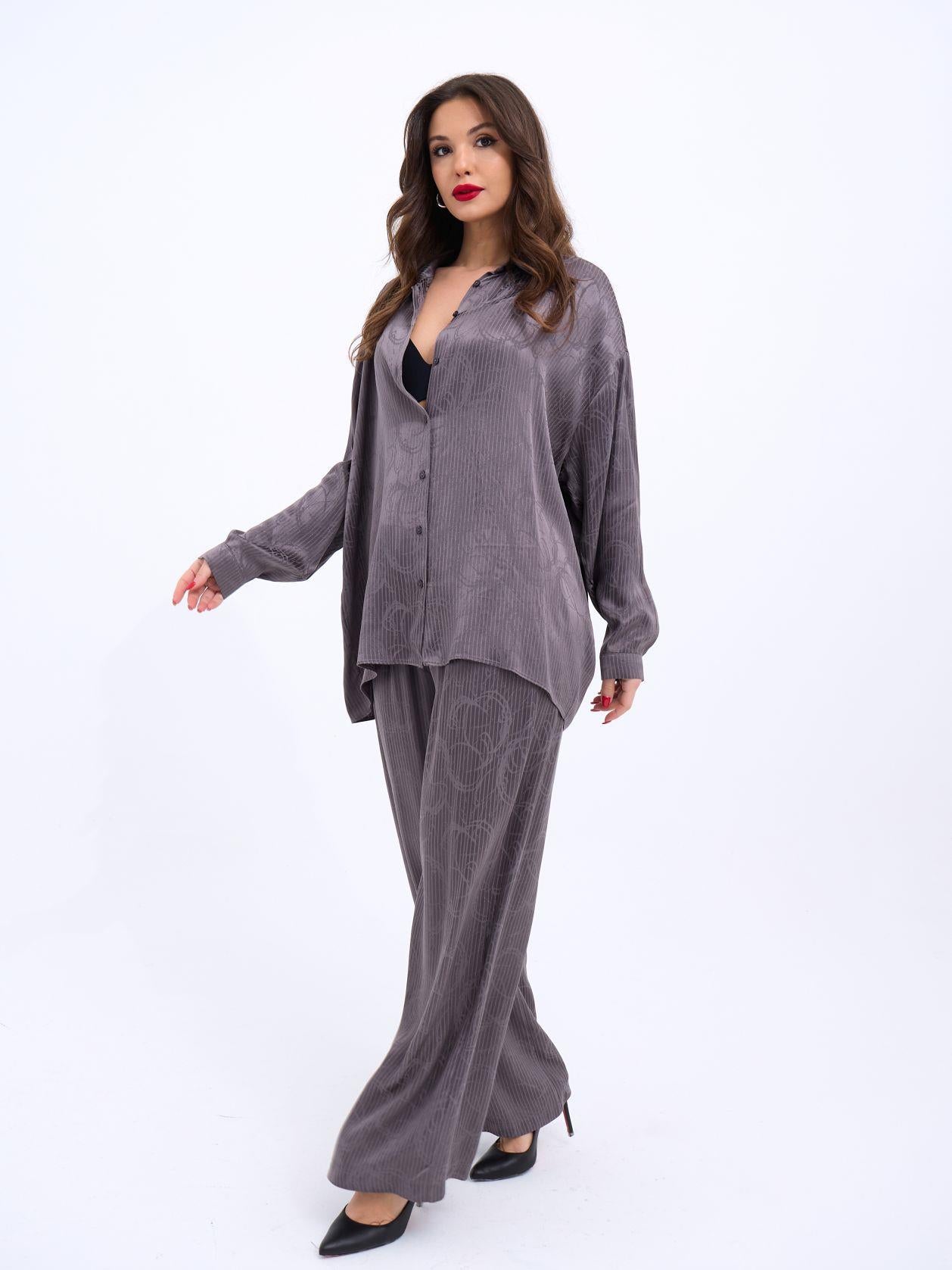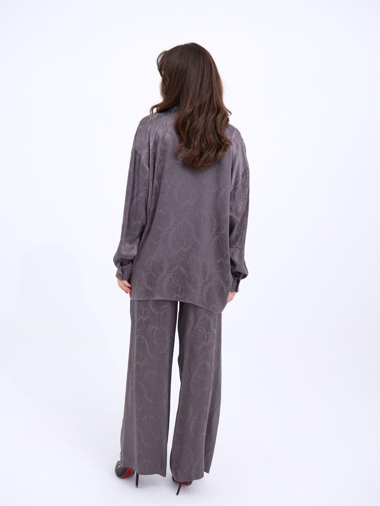 Kadın Uzun Kollu Bisiklet Yaka Desenli Viskon Iki Iplik Bluz