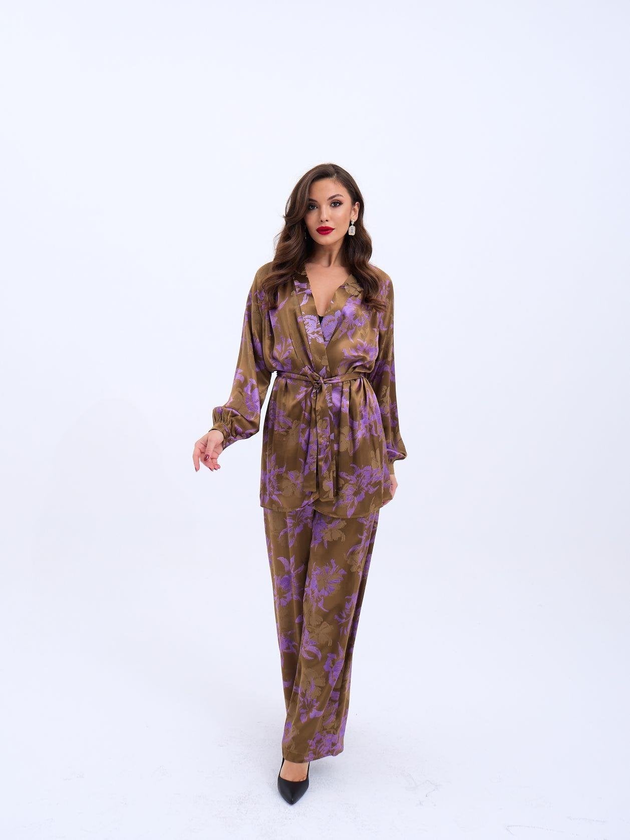 Kadın Uzun Kollu Bisiklet Yaka Desenli Viskon Iki Iplik Bluz