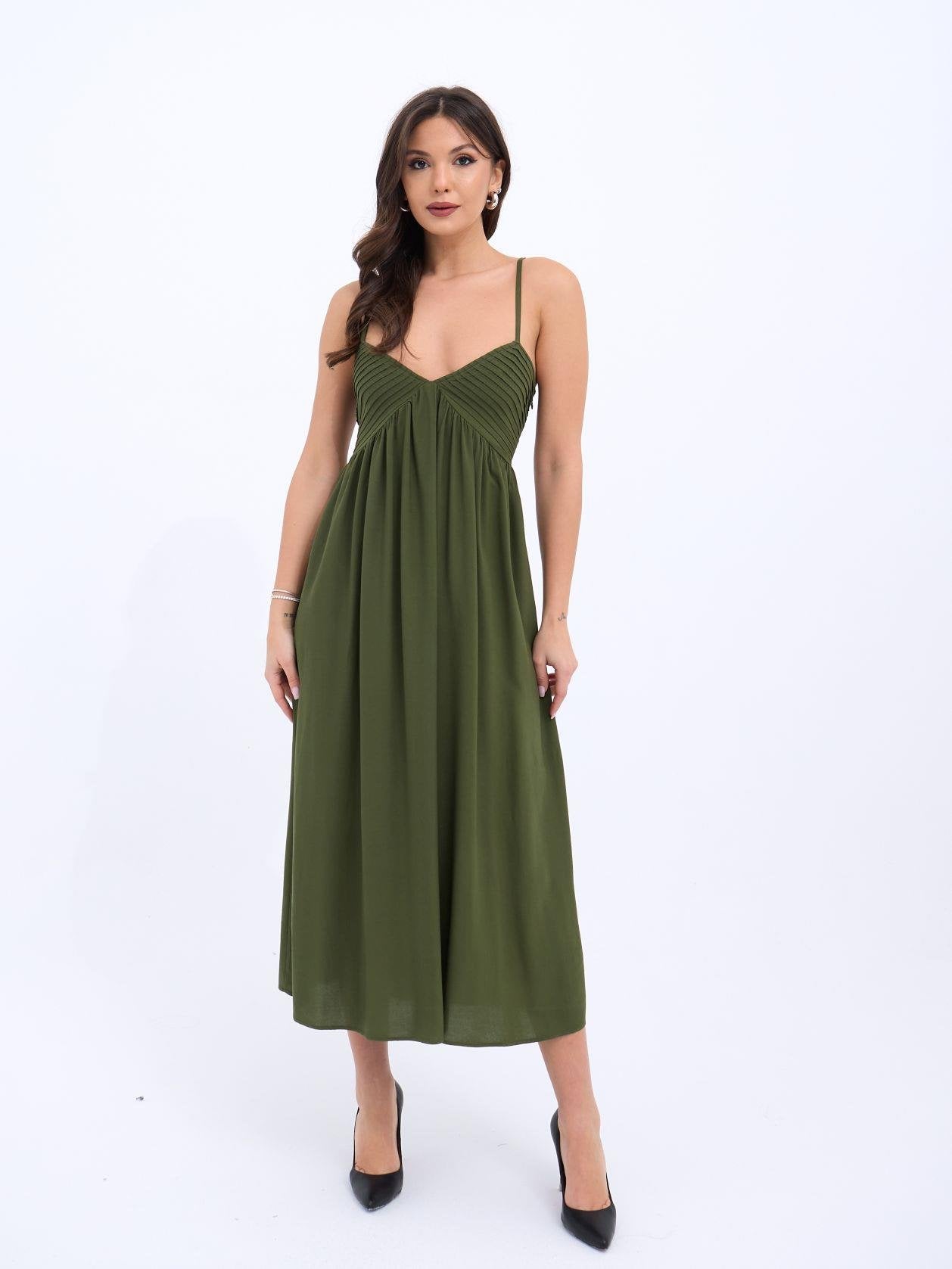 Kadın Kısa Kollu Yakadan Ve Etekten Fermuarlı Midi Viskon Iki Iplik Elbise