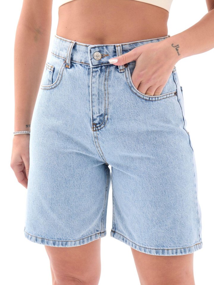 Kadın Uzun Kollu Yakadan Fermuarlı Kot Görünüm Desenli Uzun Modal Bluz