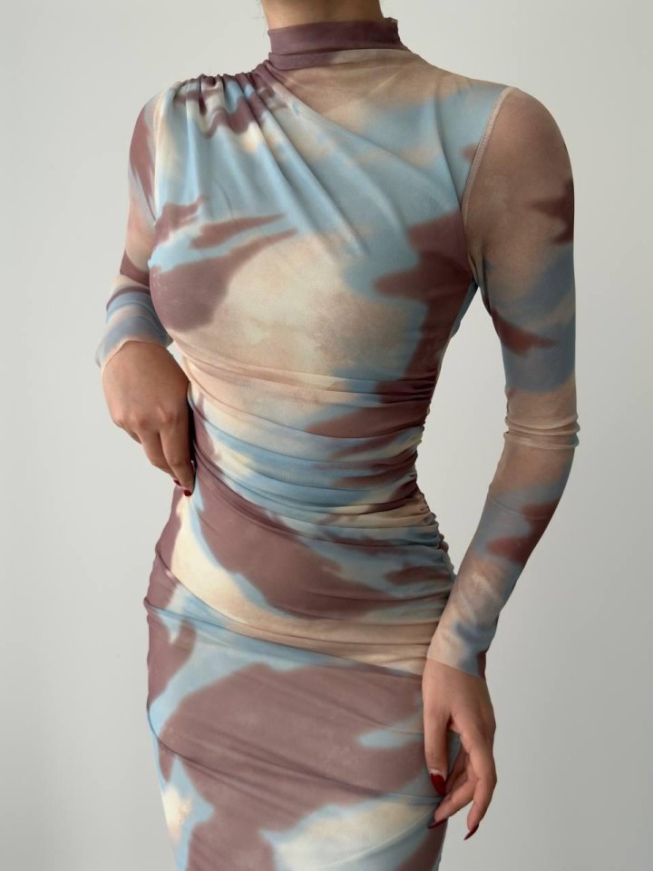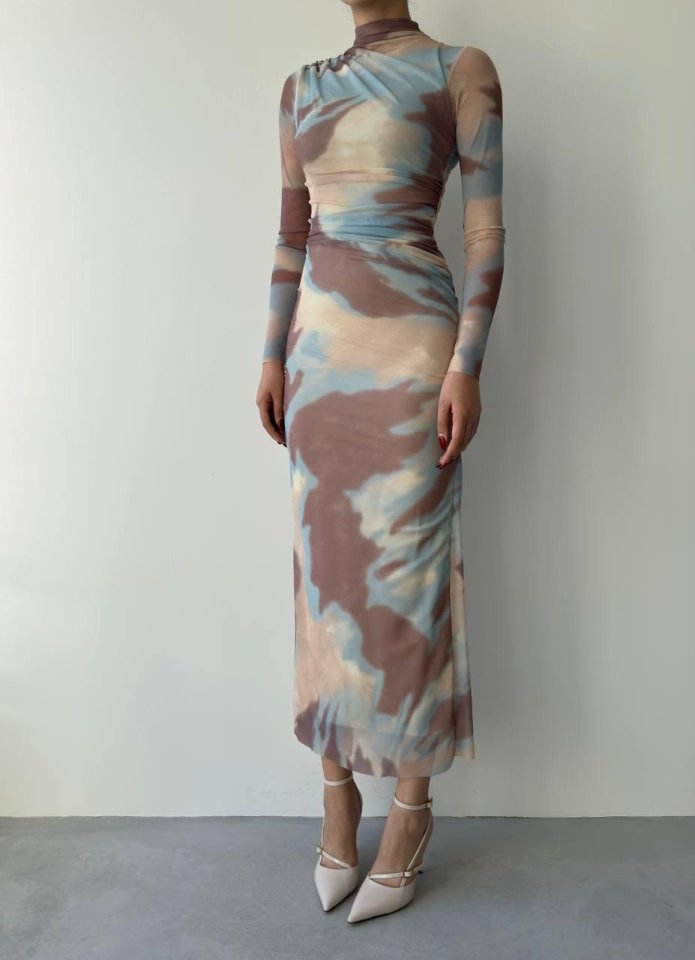 Leopar Sırt Detaylı Leopar Desenli Saten Elbise