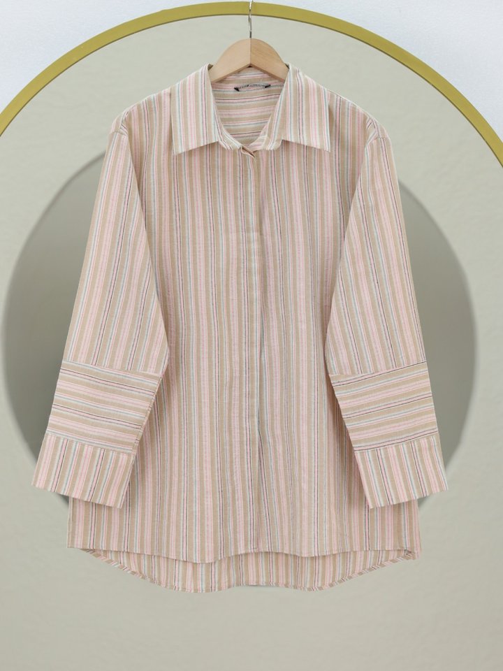 Arkası Uzun Kabartma Çizgili Oversize Gömlek -Vizon