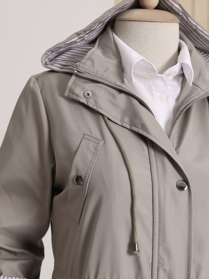Kadın Uzun Kollu Yakadan Fermuarlı Kot Görünüm Desenli Uzun Modal Bluz