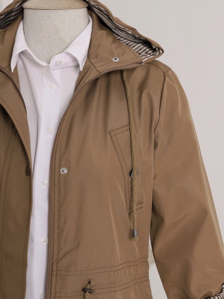 Kadın Uzun Kollu Yakadan Fermuarlı Kot Görünüm Desenli Uzun Modal Bluz