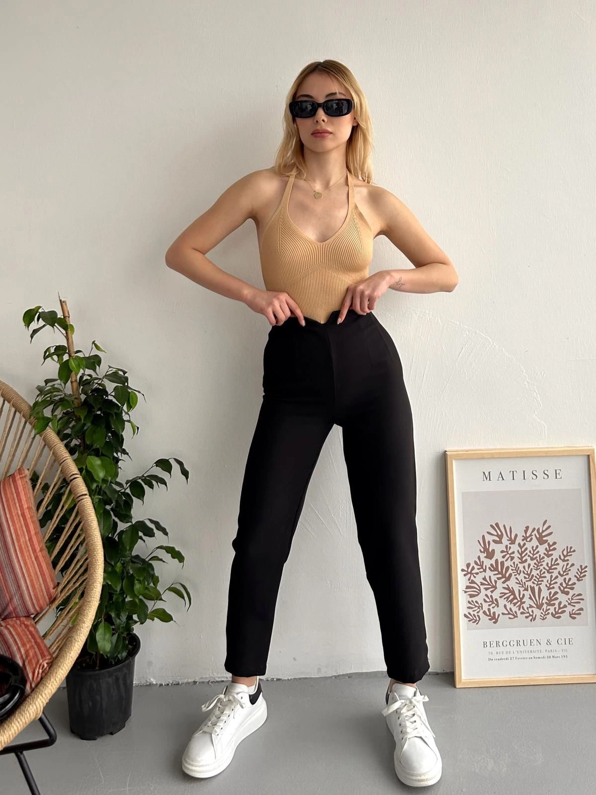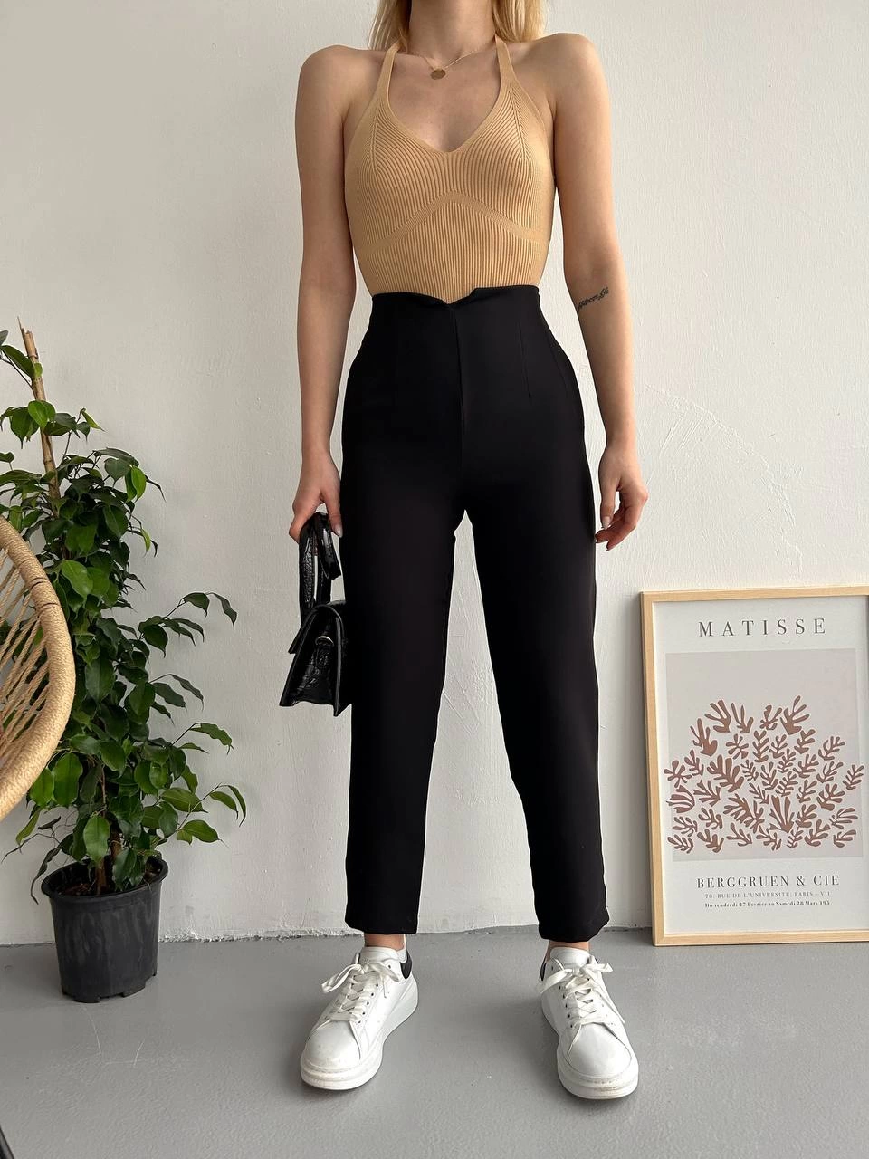 Kadın Kolsuz Boyundan çapraz Geçirmeli Göğüs Damla Detay Kaşkorse Bluz