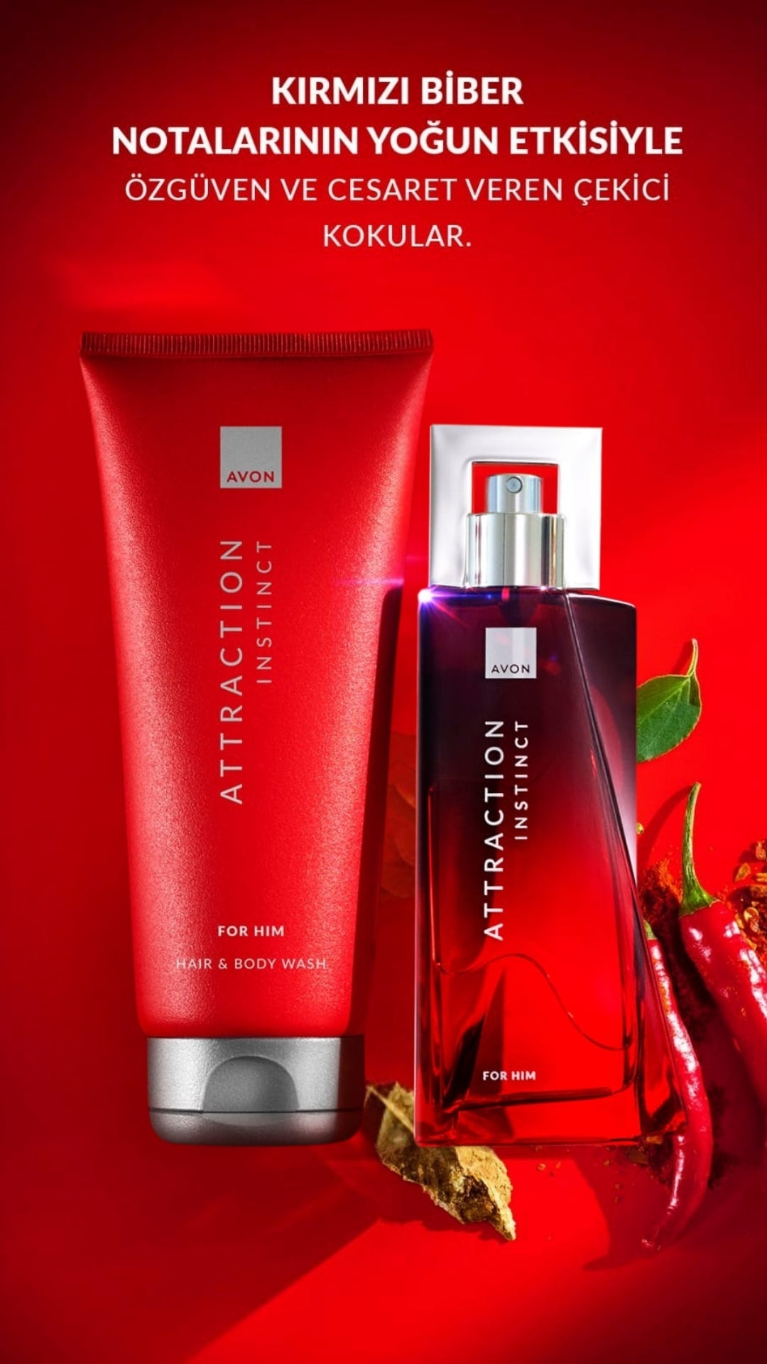 Kalıcı erkek parfüm ve 3'ü 1 arada saç & vücut şampuanı aynı sette! Attraction Instinct ile gün boyu süren ferahlığı ve özgüveni keşfedin. Bu sınırlı set fırsatını kaçırmayın, hemen sahip olun!