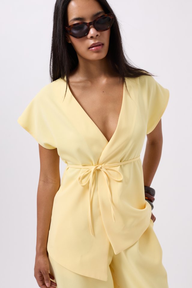 Kadın Kolsuz Boyundan çapraz Geçirmeli Göğüs Damla Detay Kaşkorse Bluz