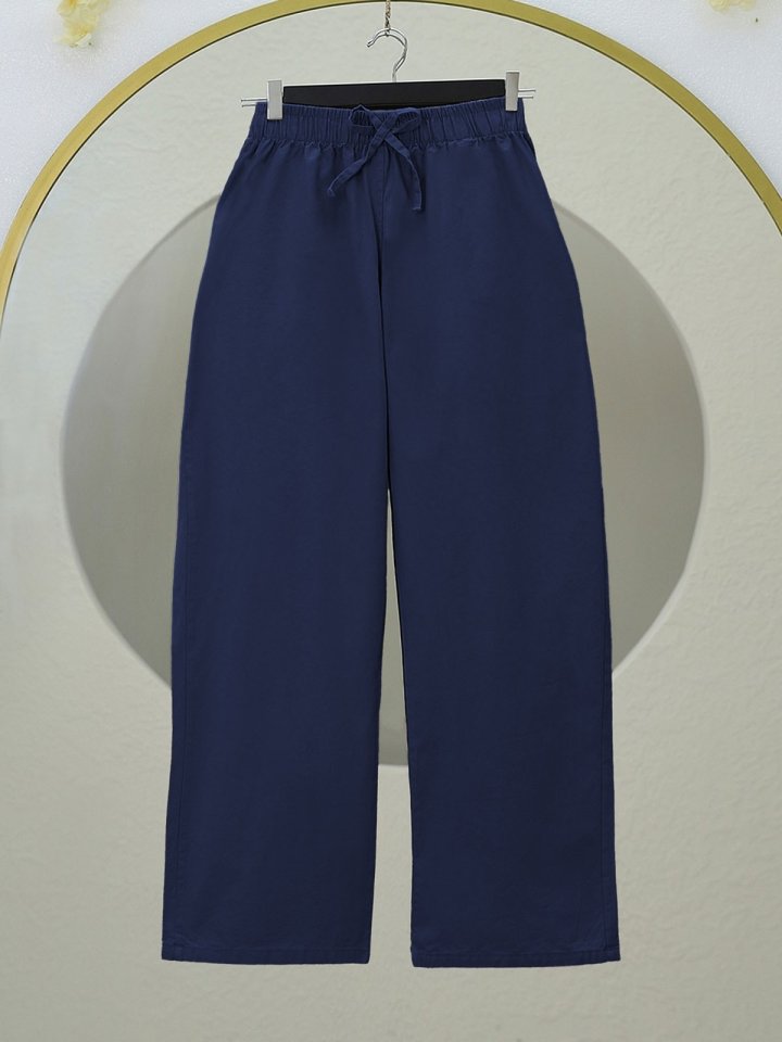 Bağcık Detaylı Bol Paça Beli Lastikli Keten Pantolon -K.Laci