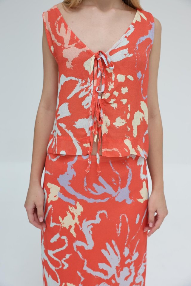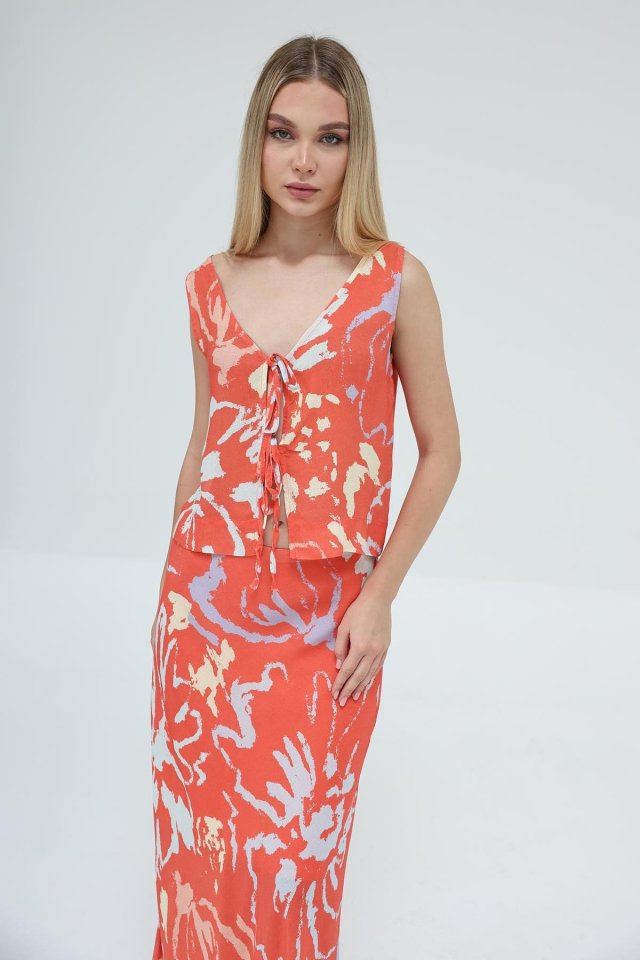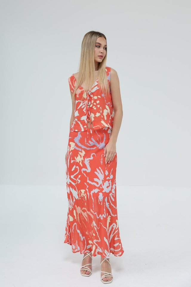 Bağcıklı Bluzlu Etek Takım - Kırmızı
