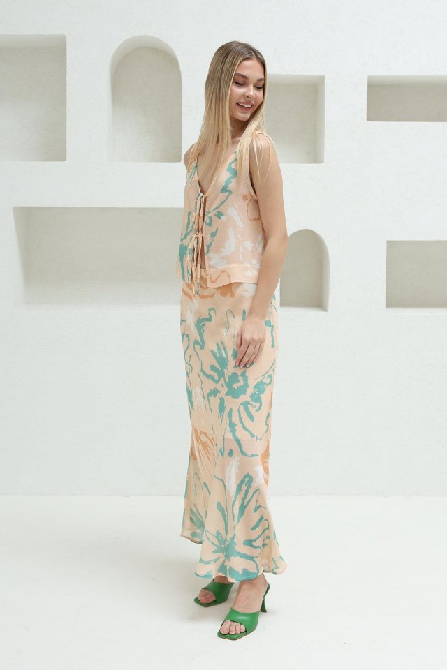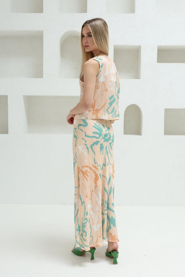 Bağcıklı Bluzlu Etek Takım - Pudra
