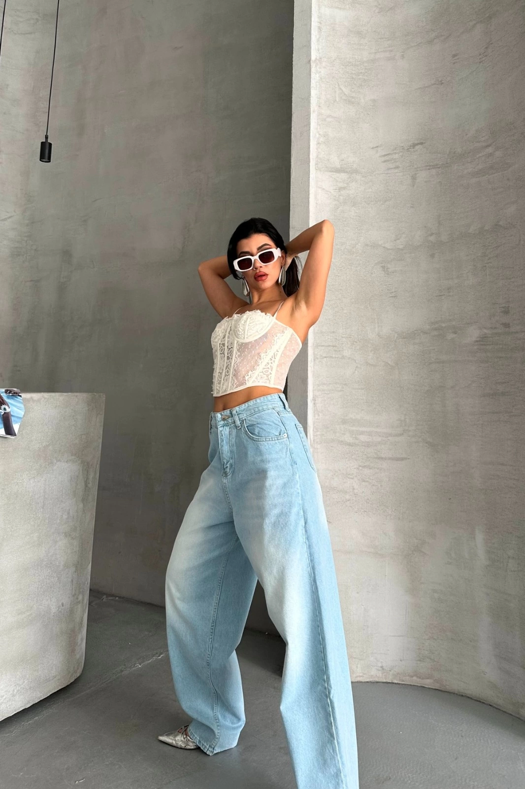 Baggy süper taş bıyık yıkama buz mavi d2007