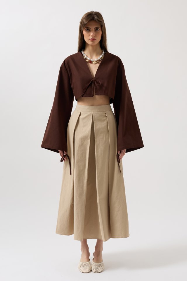 Crop Ceketli Ve Pile Etekli Garnili Takım 10111