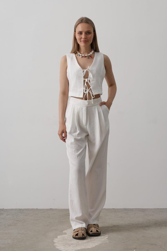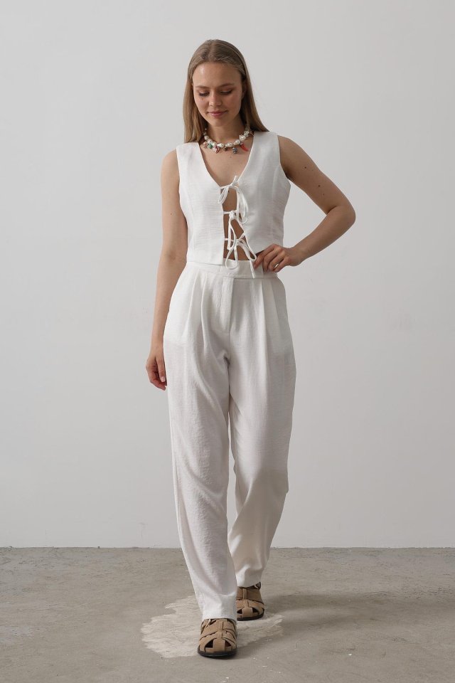 Kadın Kolsuz Boyundan çapraz Geçirmeli Göğüs Damla Detay Kaşkorse Bluz