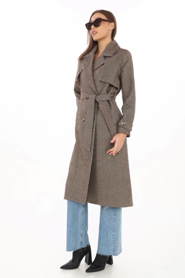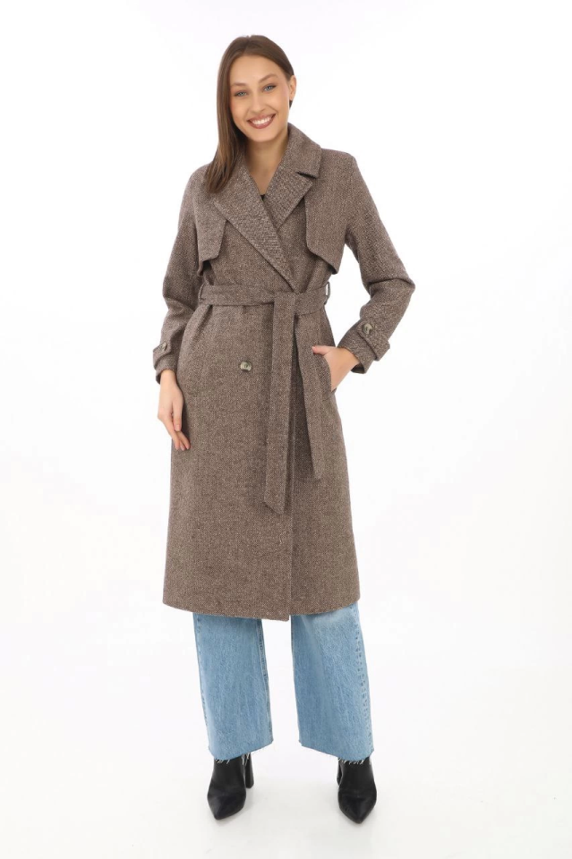 Balık Sırtı Kaşmir Uzun Kaşe Kaban - Vizon