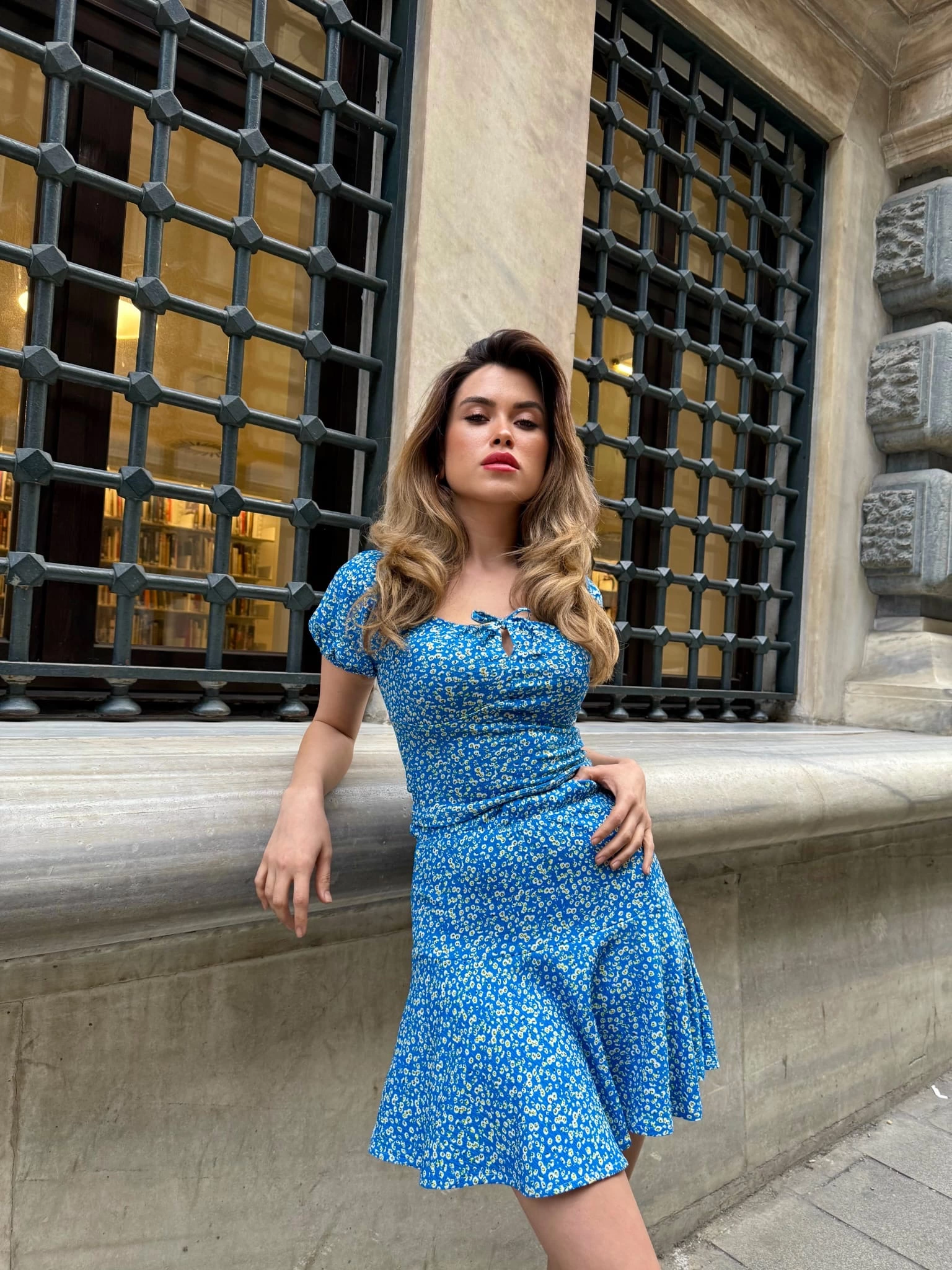 Kadın Madonna Mendil Yaka Fırsat ürün Büzgülü Mini Elbise