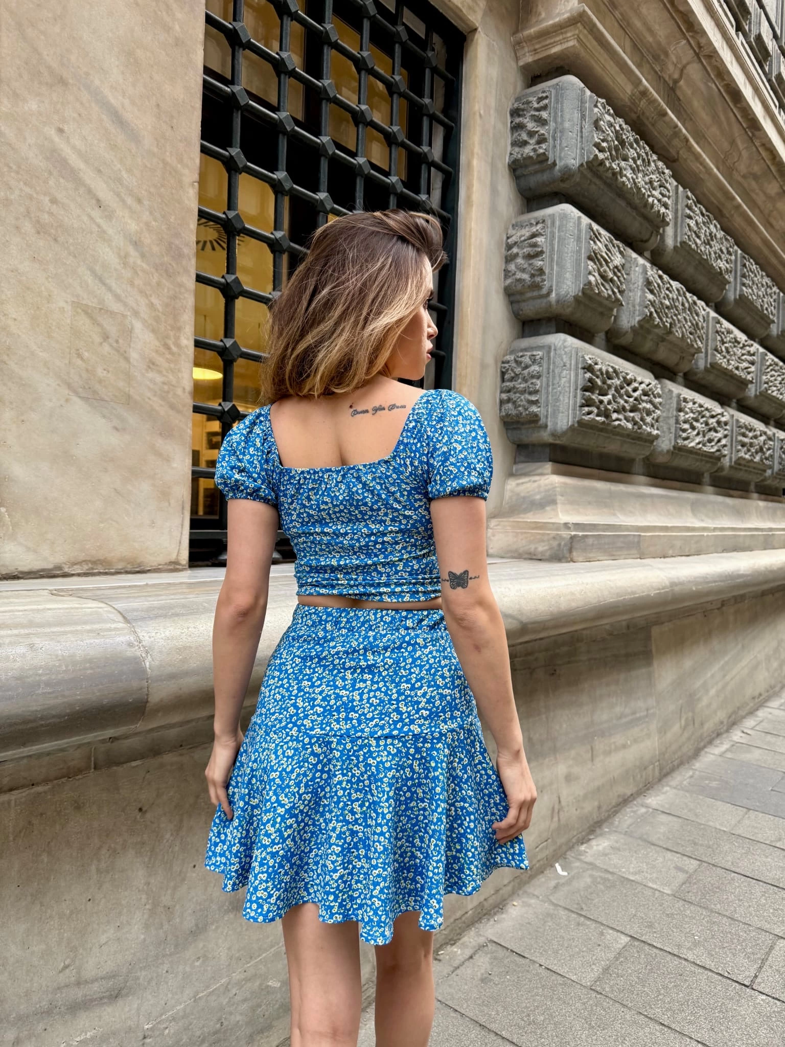 Crop Ceketli Ve Pile Etekli Garnili Takım 10111